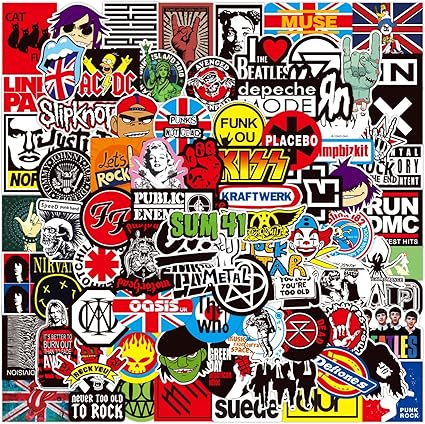 100pcs Rock Band Stickers - 60s 70s 80s 90s Music for Laptops, Water Bottles, Helmets, Guitars - Customize Your Gear