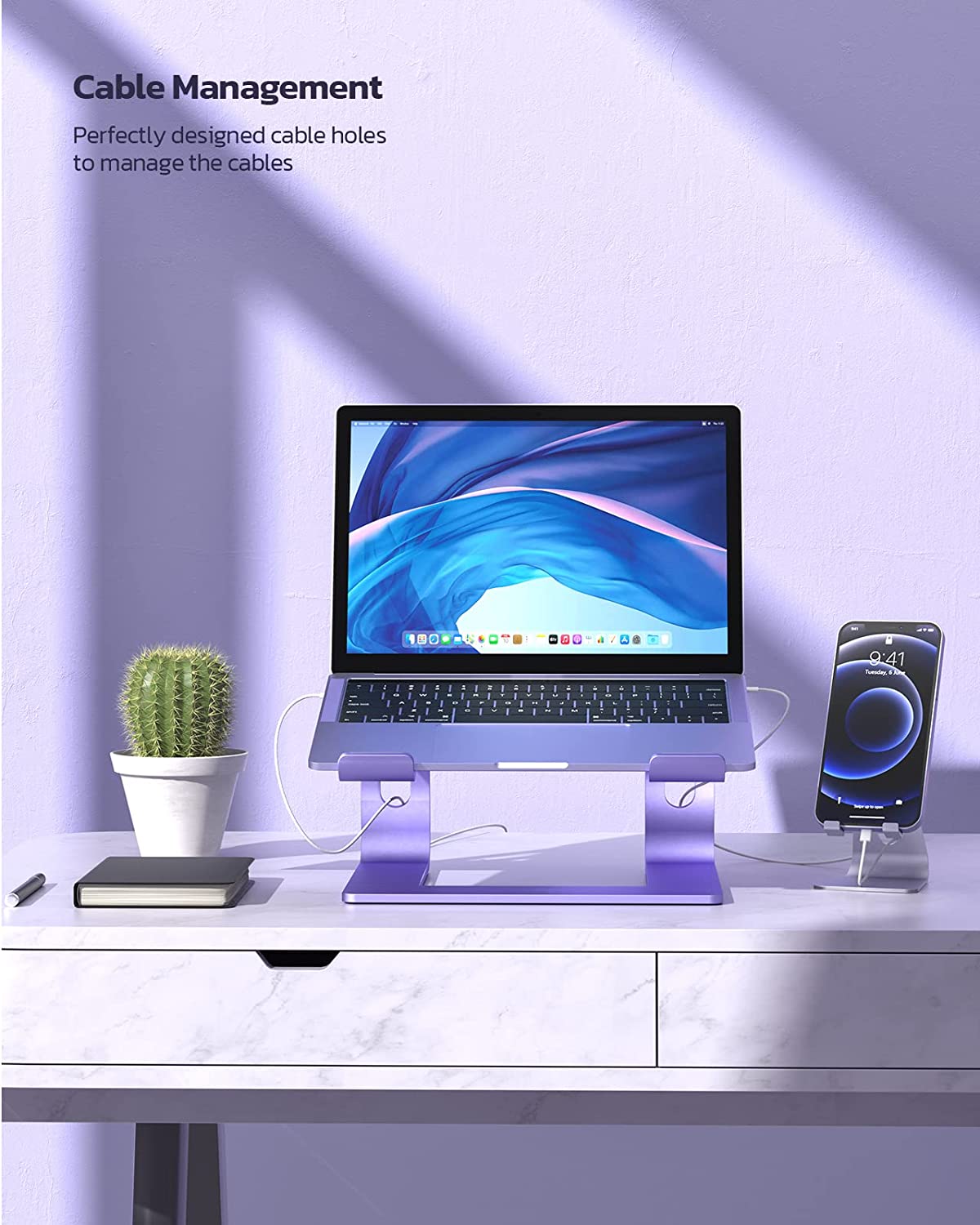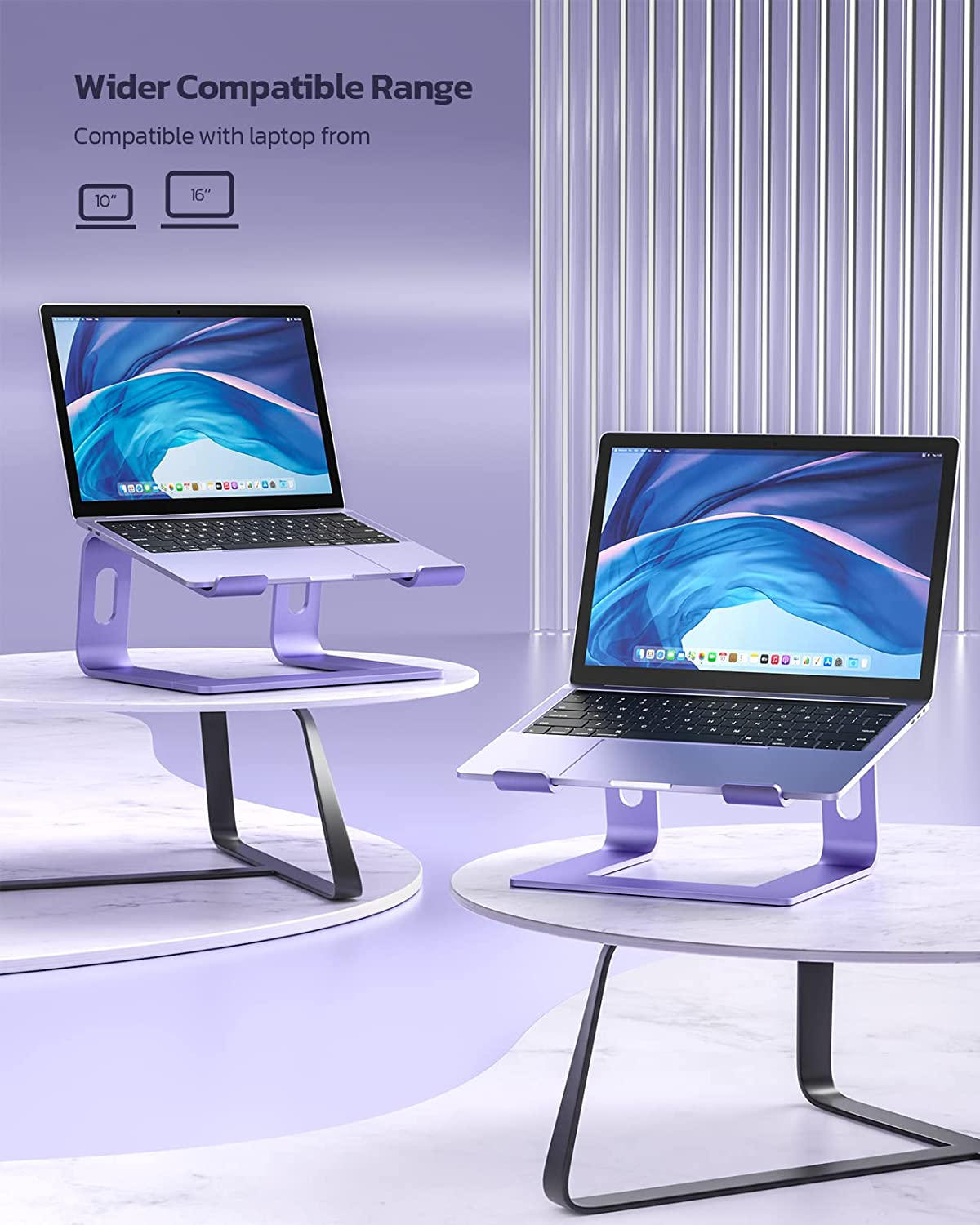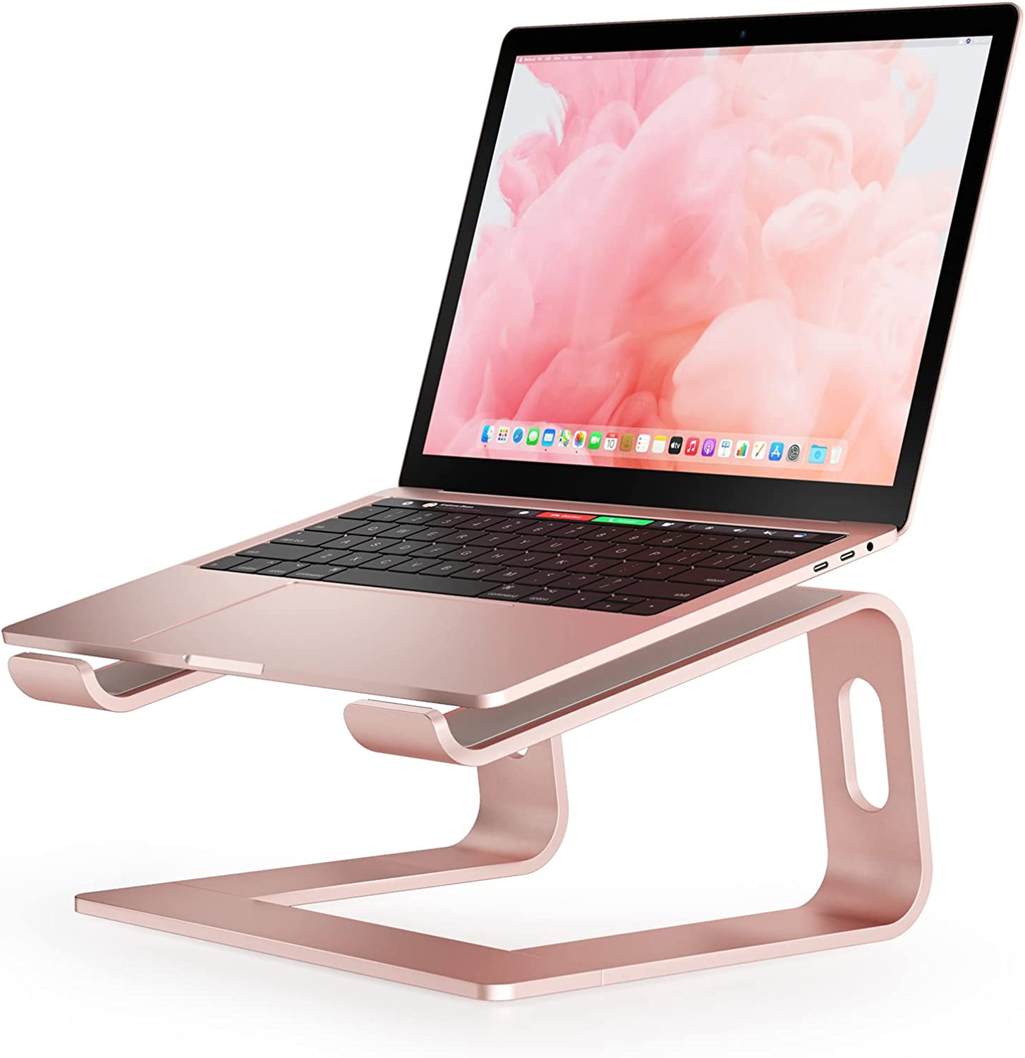 • 【Sturdy & Protective Design】 Made with premium 5mm aluminum alloy this laptop stand is study and is able to support laptop weighing up to 22 lbs (10kg) and with the large rubber pads on the surface it will hold it steady too. We also have pads on the bottom to prevent it from sliding and protecting your laptop from any unwanted harm.