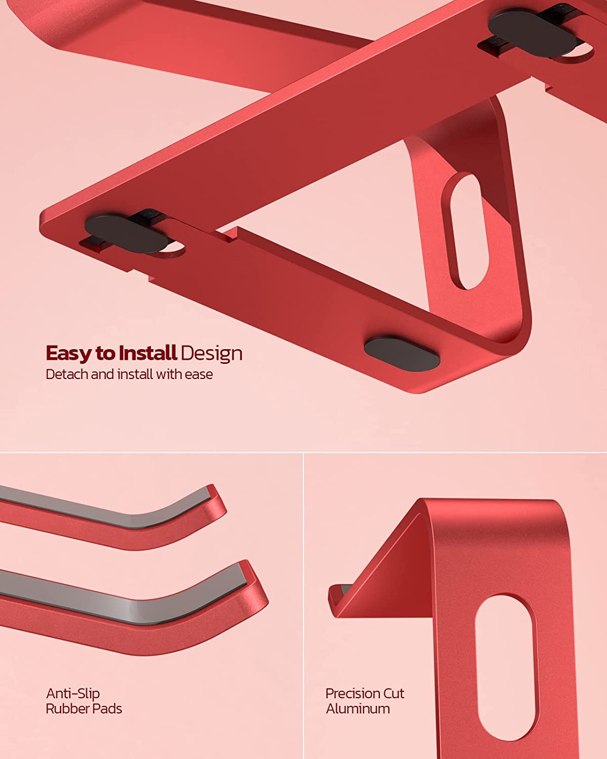 • 【Detachable & Simple Installation】 This laptop stand has premium CNC cut aluminum alloy material that will make sure it’s easy to reassemble and fits perfectly without any issues. With our easy to disassemble design you can easily detach it into 3 parts and store it to keep your desktop clean.