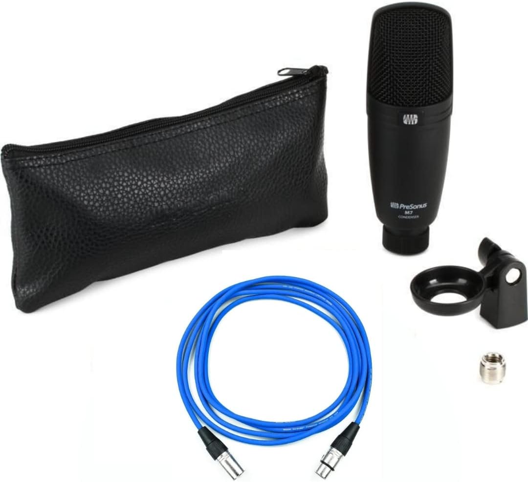 An ideal general-purpose microphone for musicians and content creators who want to save a buck without sacrificing audio quality, the PreSonus M7 cardioid condenser microphone is well-suited to vocals, guitar, podcasts, live streams, and more. It sounds great recording very nearly anything, but places particular emphasis on a warm, round top end that compliments the human voice. And with a maximum 134dB of SPL handling, you can even use it on louder instruments like electric guitar cabinets or snare drums. Rugged construction and top-quality performance specifications make the M7 cardioid condenser microphone an excellent addition for any home recording or streaming studio.