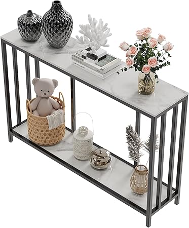 Wisfor Console Table for Entryway: 2-Tier Sintered Stone Table Marble Table Modern Table Sofa Side Table Console Hallway Foyer Table, White 47.2x11.8x30.7 inch