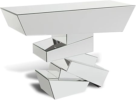 ZURI Furniture Modern Naxos Console Table Mirrored Glass Finish Sharp Geometric Design
