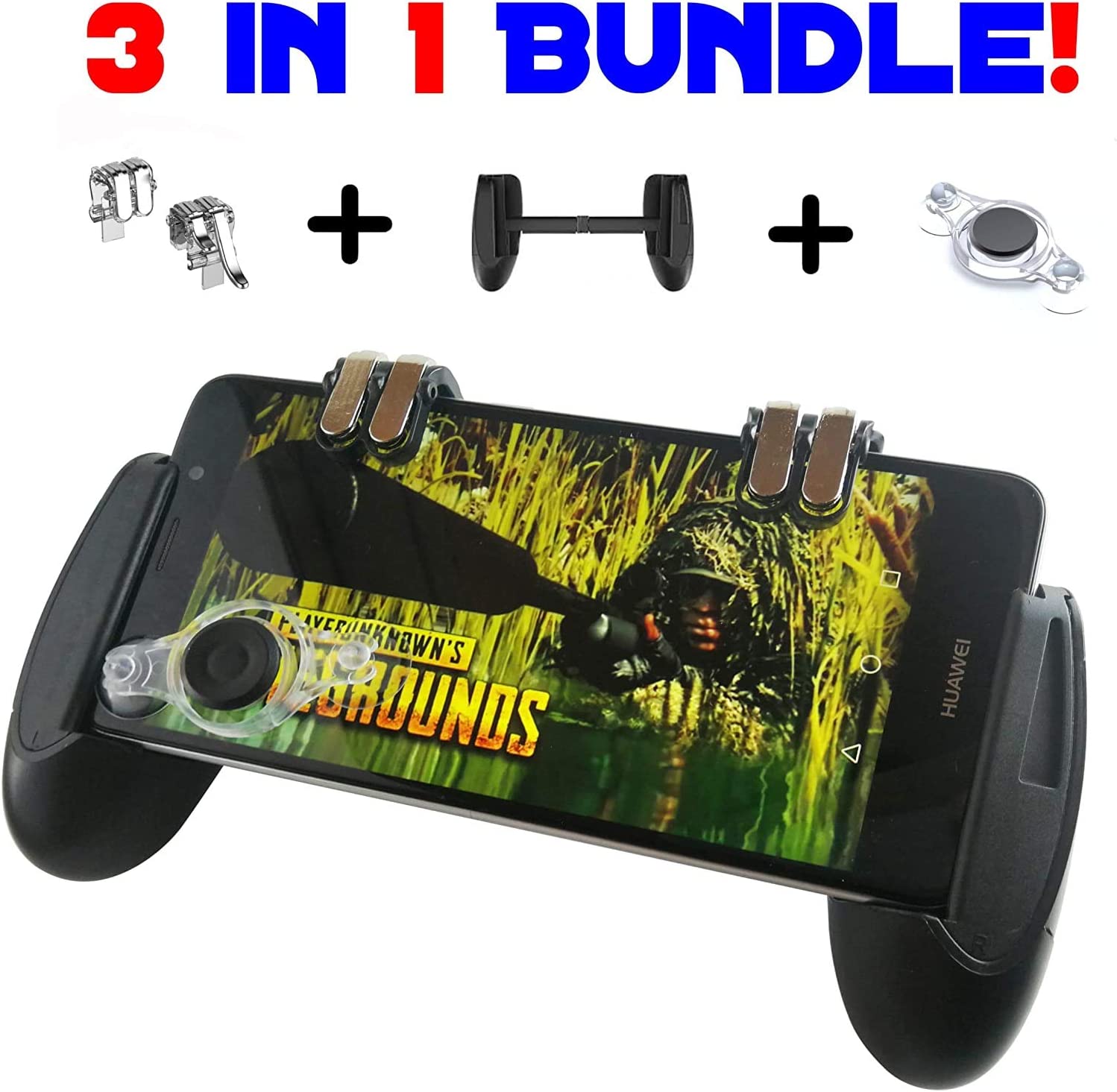 Package Contents: (1) Mobile Game Grip/Handle (2) Aim/Fire Trigger Buttons (1) Mobile Joystick (1) Portable Case For Game Grip (1) Portable Case For Trigger Buttons Compatible Devices: IPhone 6plus, 6s, 6splus, 7, 7plus, 8, 8plus, X Samsung Galaxy Note 8, S8, S8 Plus, S9, S9 Plus All android devices that are between 5.5 and 6.5 inches in length. Supported Games: All shooter games that allow HUD customization How To Set Up: Go to customize HUD in your game setting Select the keys that you would like Drag them under the touchpad of the triggers/bumpers Press save and you are ready to win! Note: Our triggers do not work well with thick phone cases. Thin cases and no case at all work best.