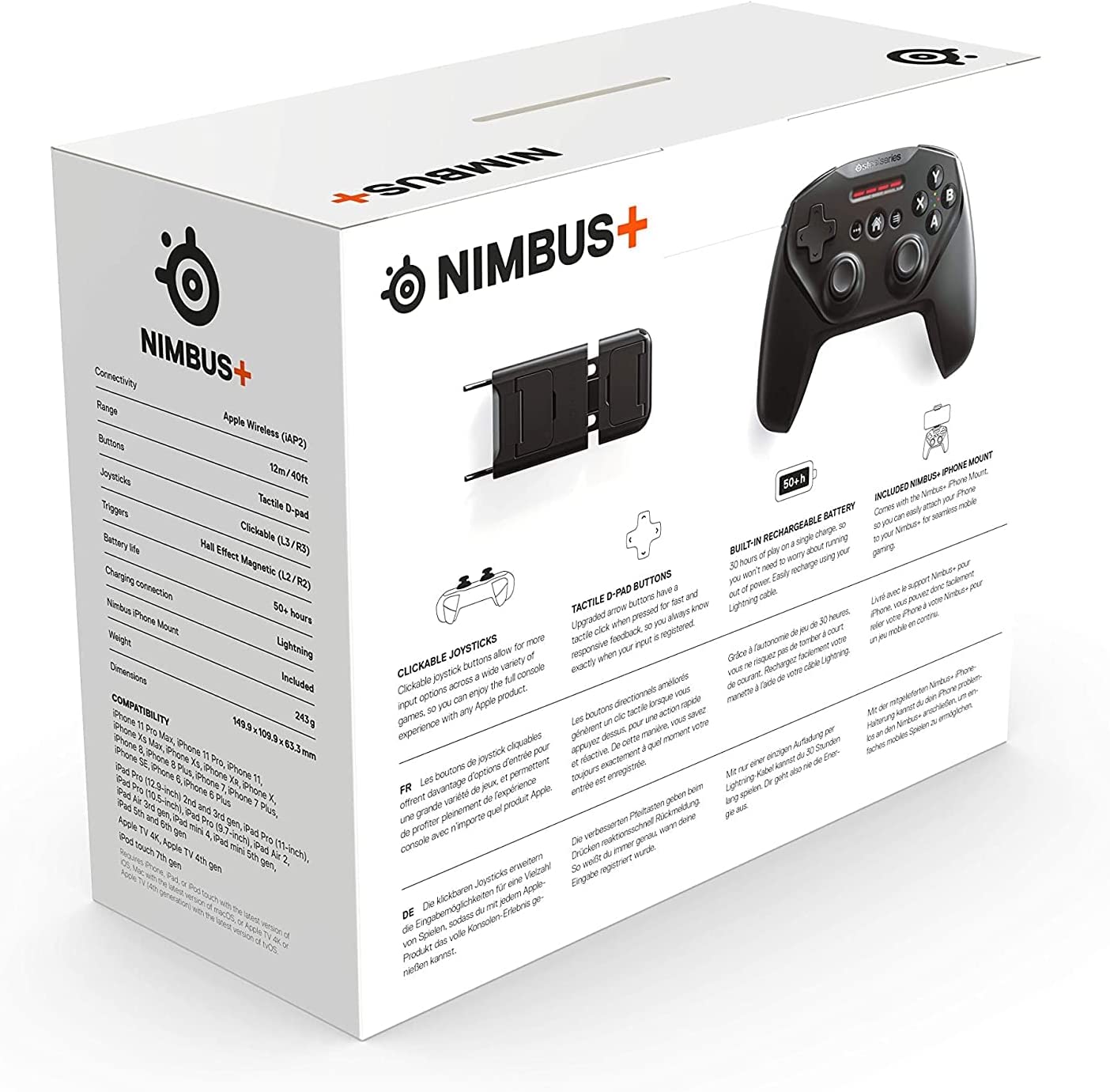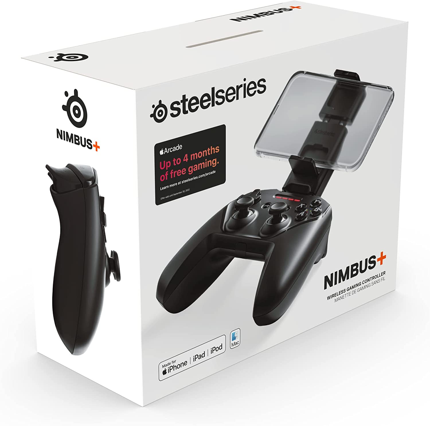 Designed specifically for Apple Gaming, Nimbus+ brings a console quality gaming experience to the iPhone, iPad, iPod and Apple TV. With an ergonomic design, responsive triggers and buttons, and a range of Apple connectivity options, Nimbus+ is the best solution to bring Apple gaming to the next level. For optimizing compatibility with all iOS devices we strongly suggest that you update the controller by downloading SteelSeries Engine from the SteelSeries website. Purchase of product comes with up to 4 Free Months of Apple Arcade!