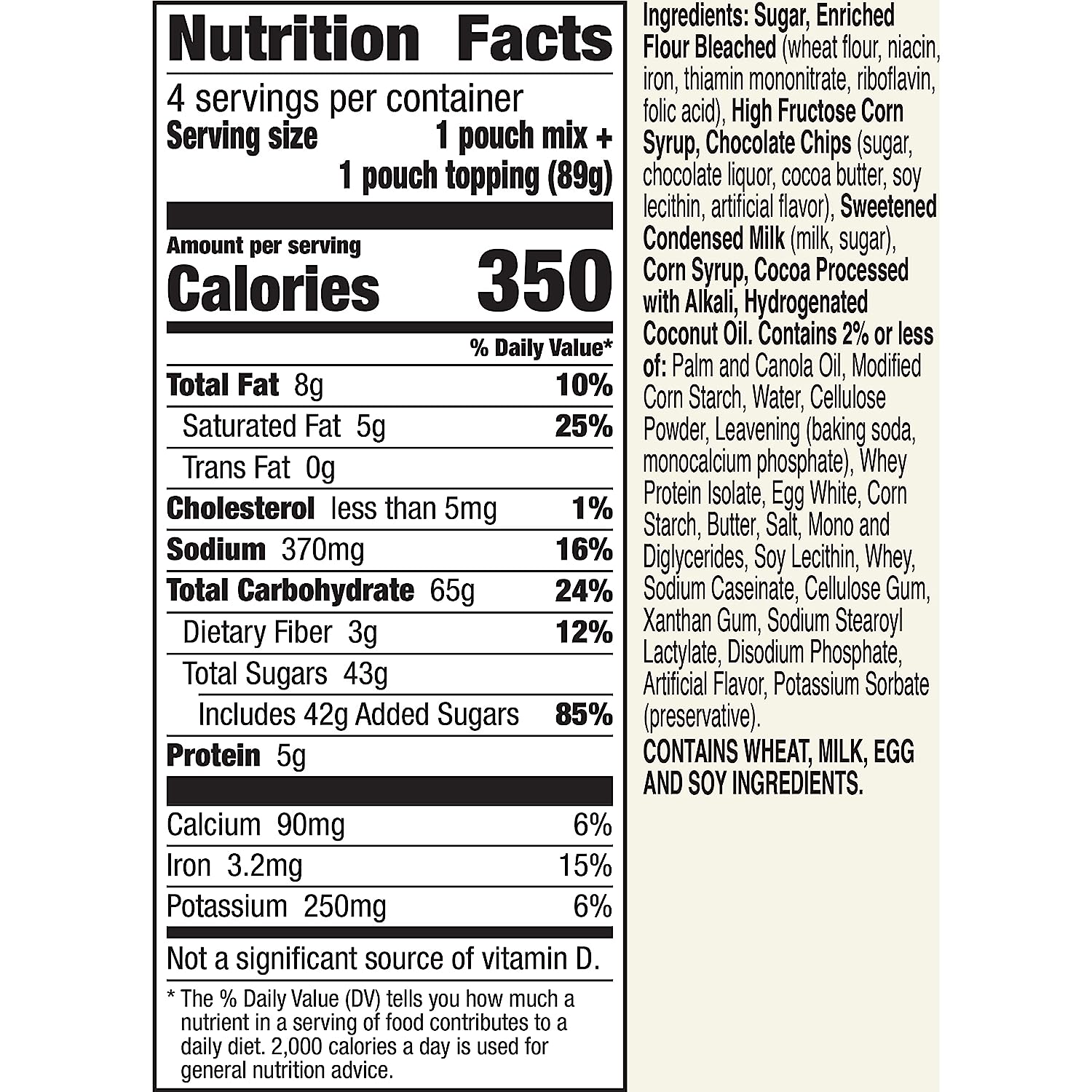 • QUICK AND EASY: Ready in about 1 minute by simply adding water or milk. After microwaving, just stir, drizzle the fudge topping and serve