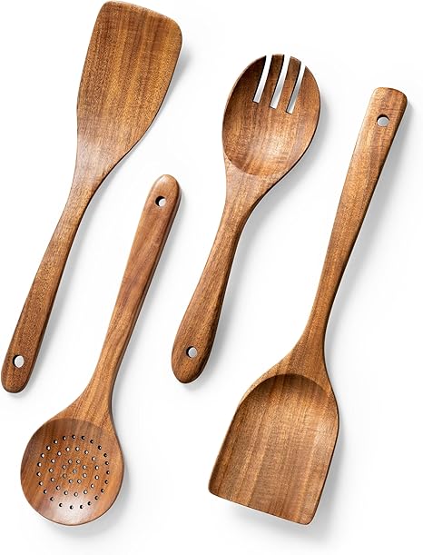4 PCS Wooden Spoons for Cooking: Complete Utensil Set with Wood Spatulas and Wooden Spoons, Attractive, Terrific for Everyday Kitchen Tasks, Present for Chefs