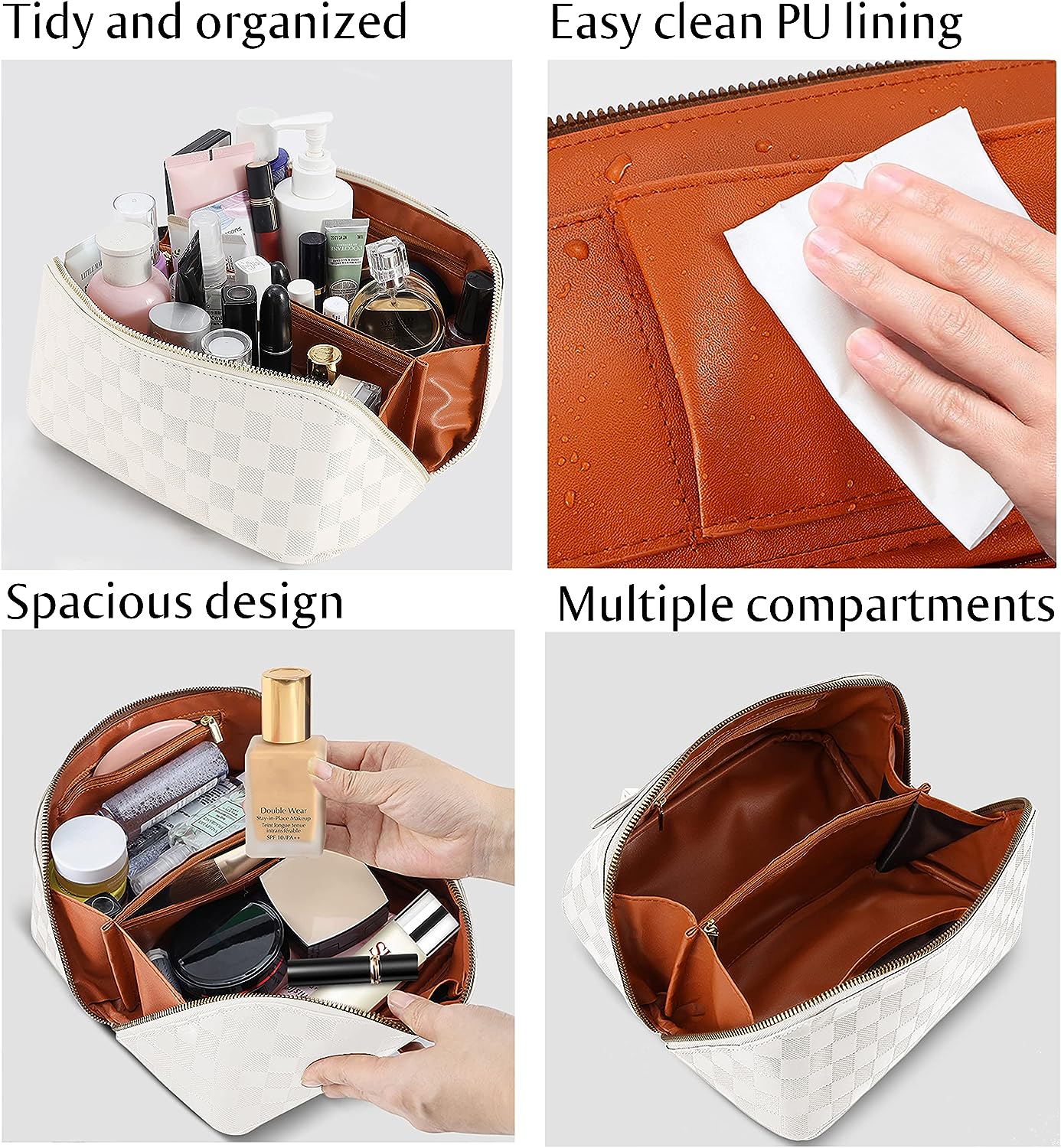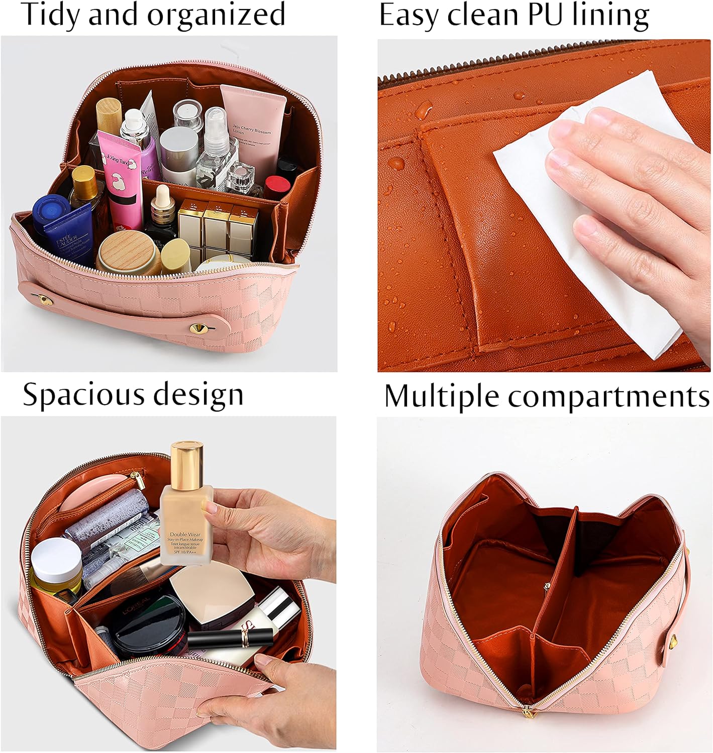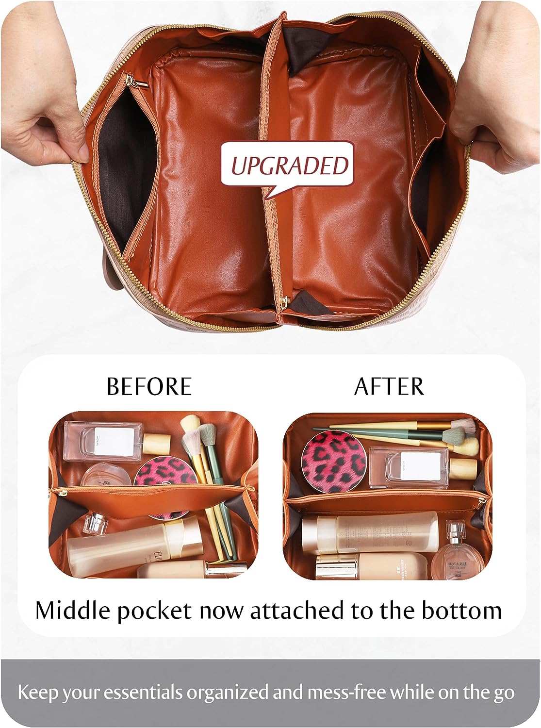 • Multifunctional & Practical - Not only as a cosmetic bag and toiletry bag, but also as an accessory organizer bag. Made of upgraded PU leather,waterproof ,soft, comfortable, lightweight and tough.Suitable for home, outdoor, travel,the multi-functional makeup bag makes your life more convenient and easy.