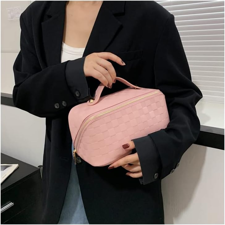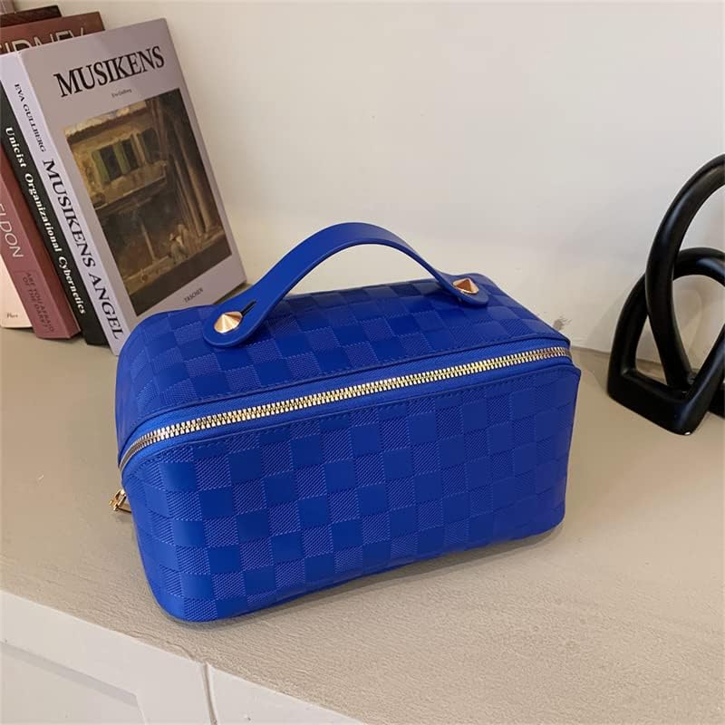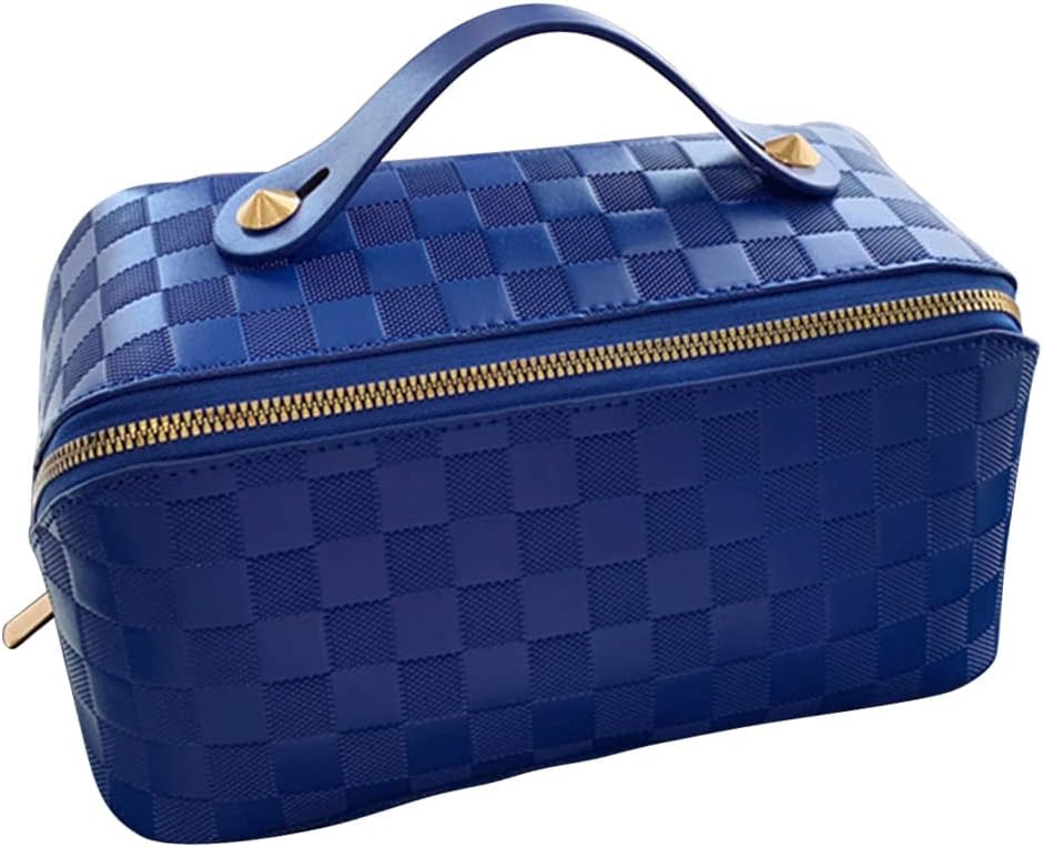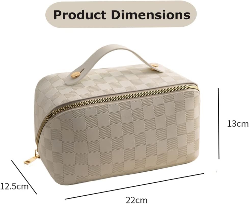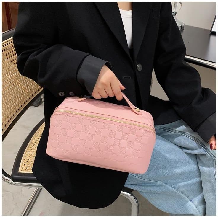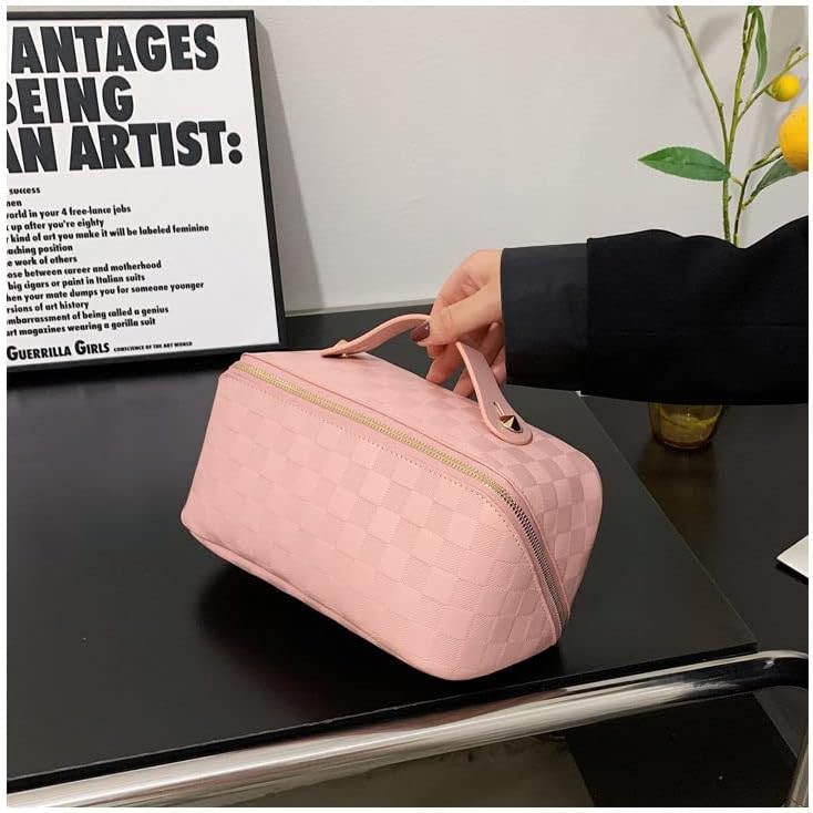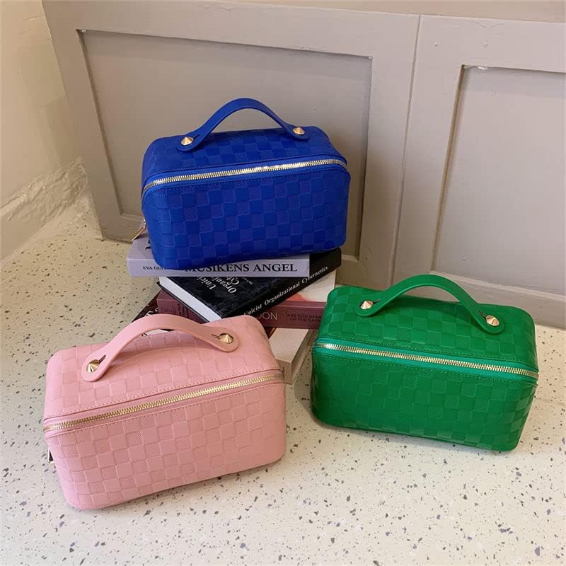 • [Style] This women toiletry bag includes 6 low-key colors (brown, beige, black, blue, pink, green) with elegant checkered pattern, exuding cozy and casual quality. Beautiful, wide open, roomy and spacious.