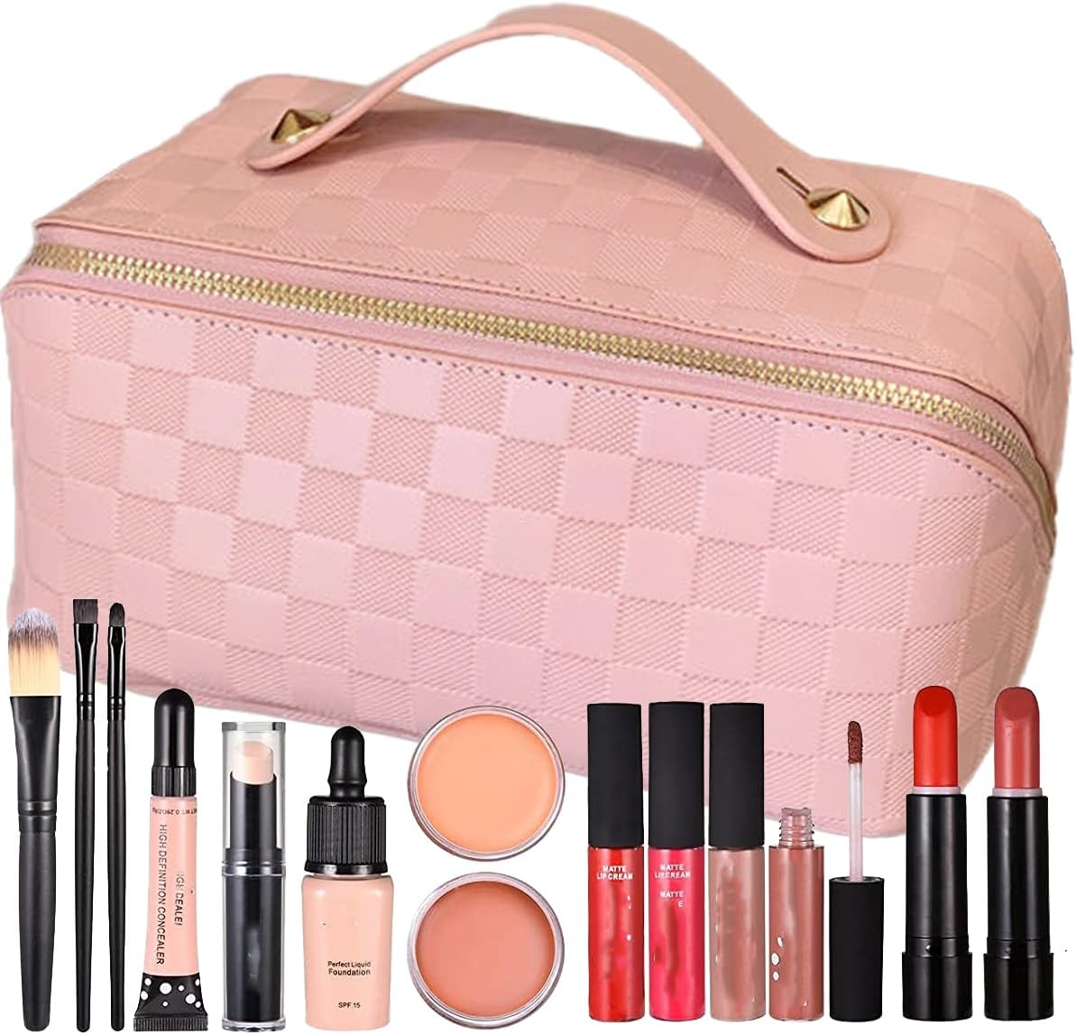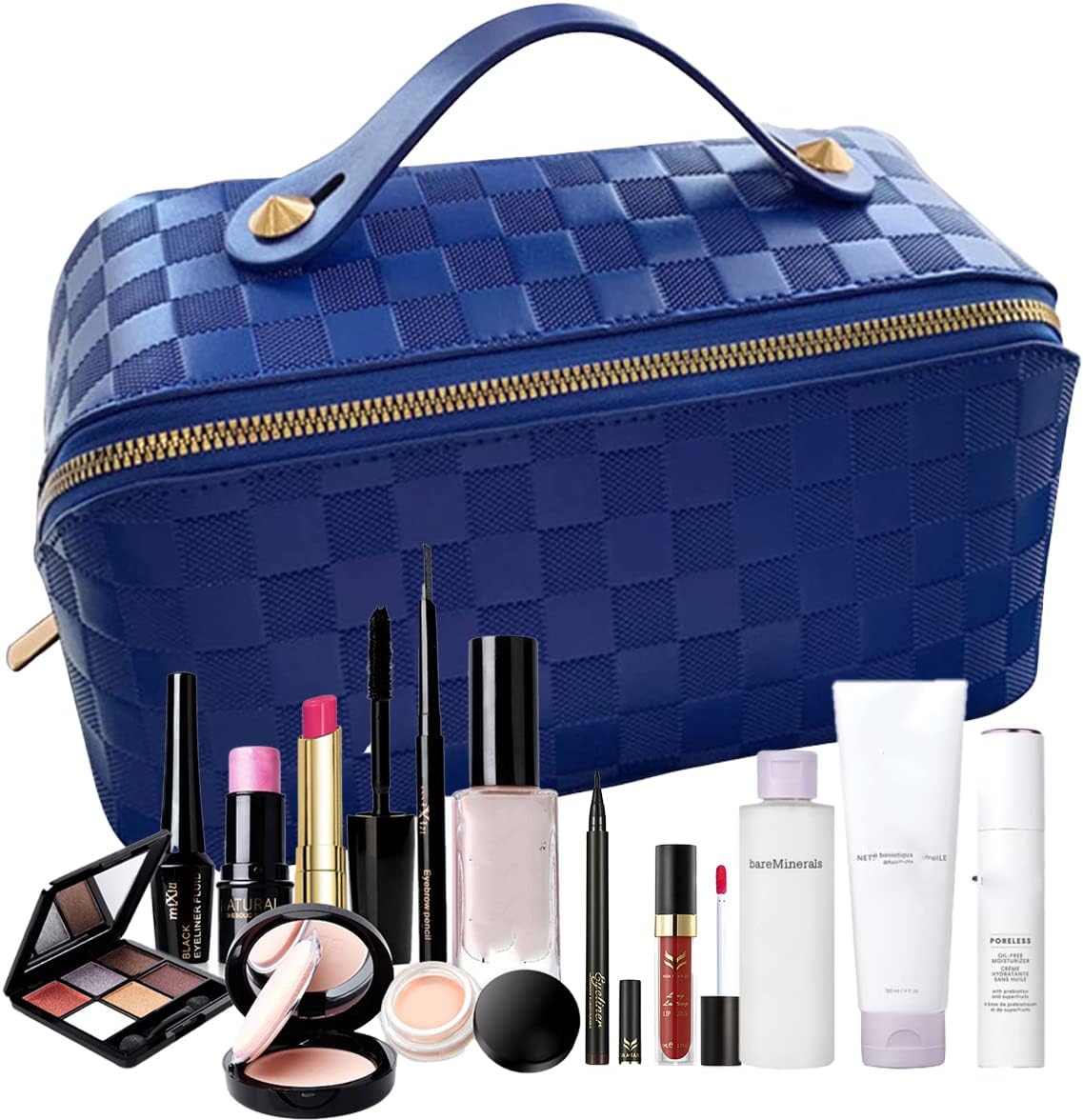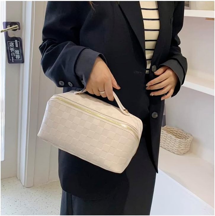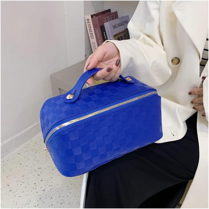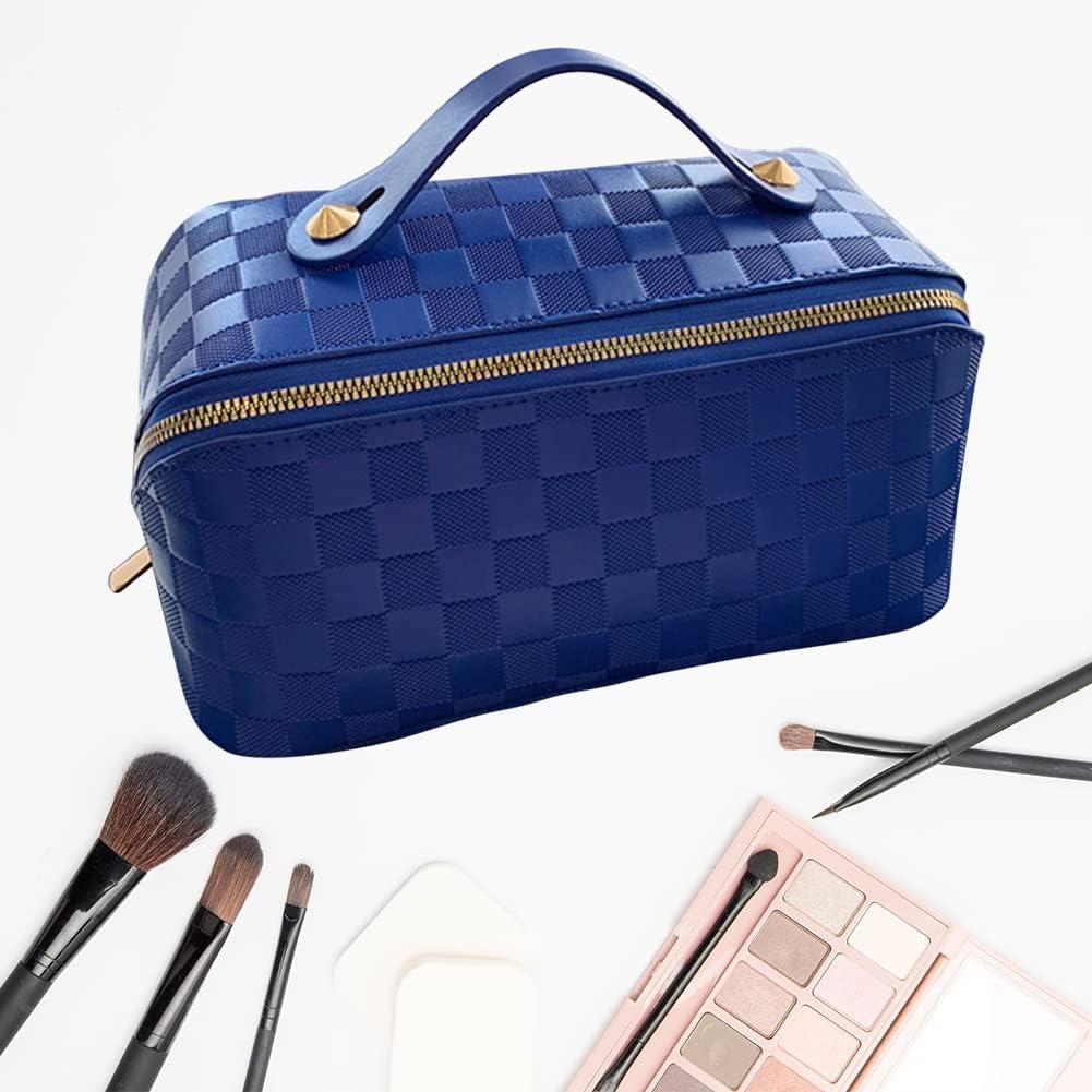 • [Style] This women toiletry bag includes 6 low-key colors (brown, beige, black, blue, pink, green) with elegant checkered pattern, exuding cozy and casual quality. Beautiful, wide open, roomy and spacious.