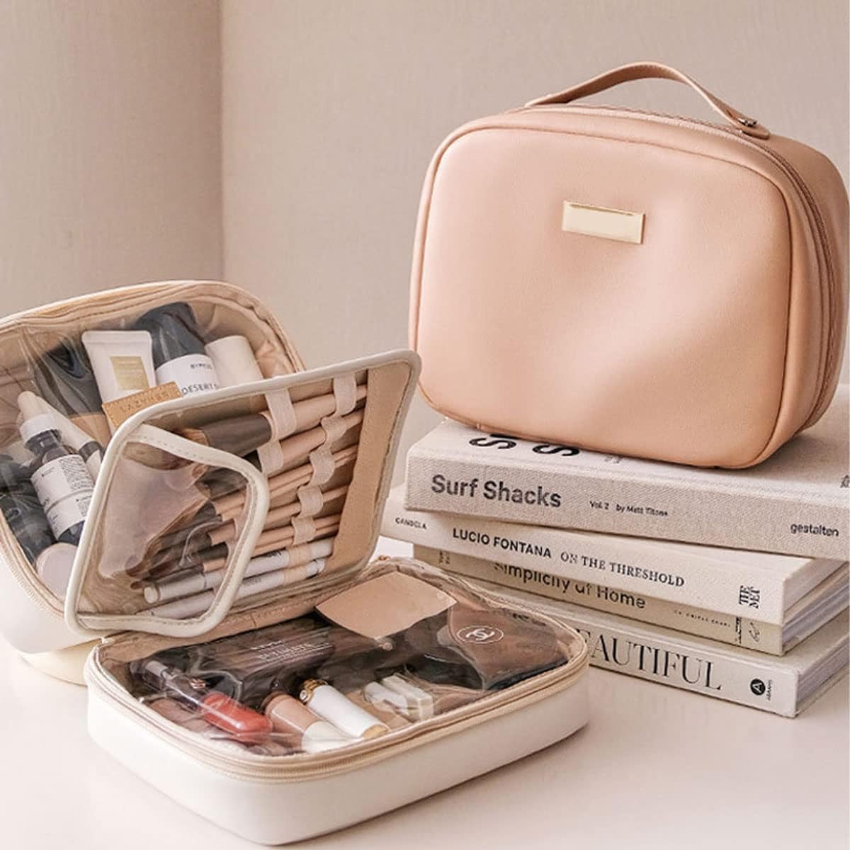 cirea Square Box Cosmetic Bag With Large Capacity, Double Layer Cosmetic Storage Bag, Portable And Waterproof Travel Storage Bag (White)