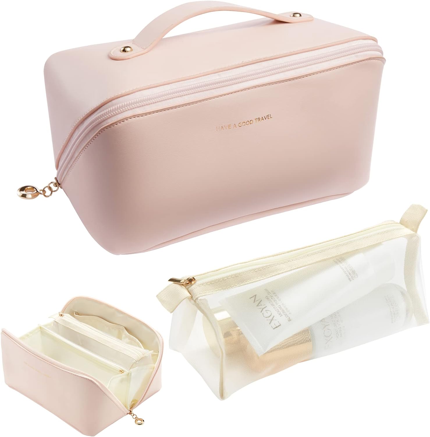 Dr.Cheese Makeup Bag Large Capacity,Waterproof Travel Cosmetic Bag for Women,Portable Travel Makeup Bag,Large Cosmetic Organizer for Women Girls,Toiletry Bag,With Increase Capacity Mesh Bag