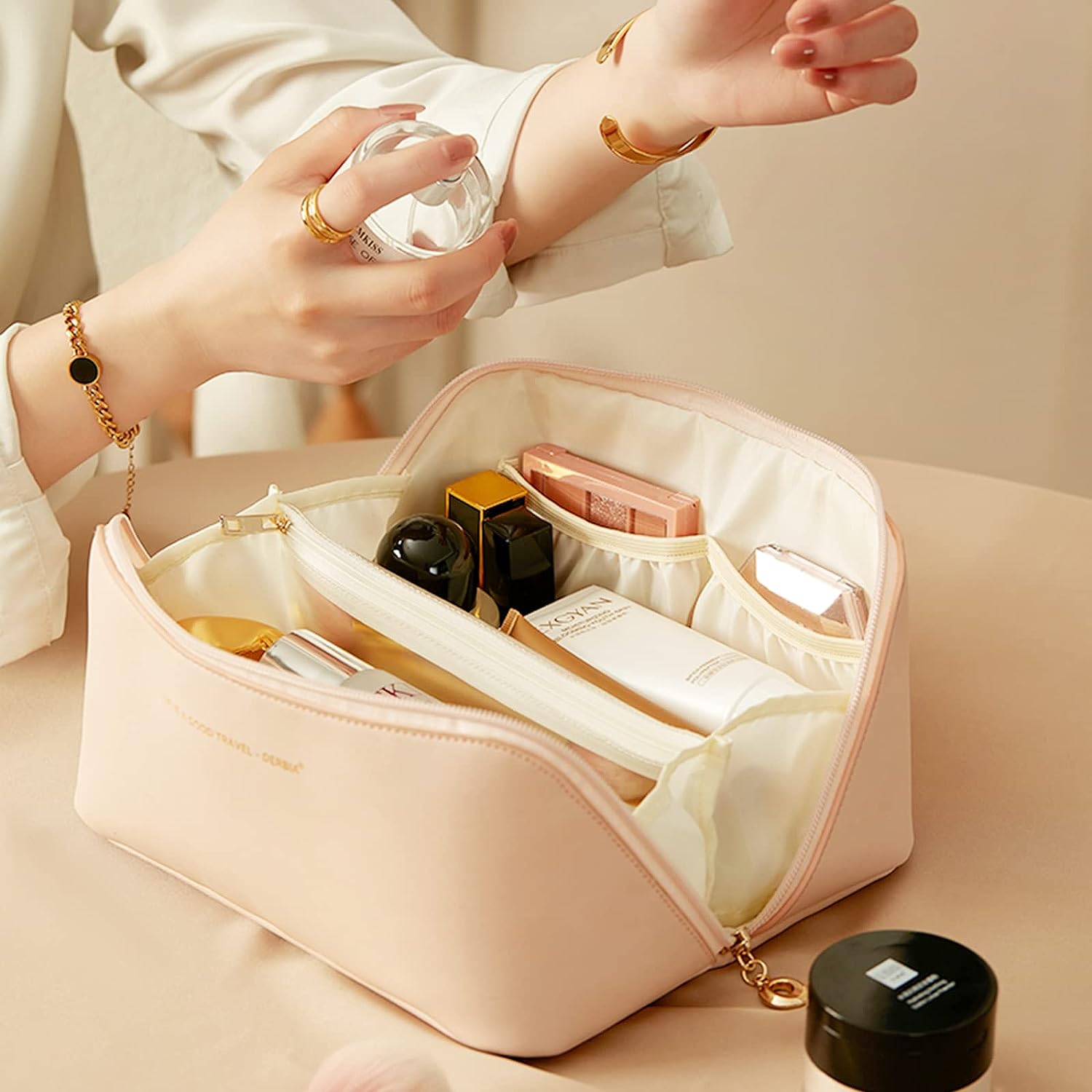 • 【High quality, exquisite workmanship】 The handle of the cosmetic bag adopts the oil edge technology, which makes it comfortable to hold. The French cat's eye pull head is matched with the same color zipper, which is beautiful, smooth and durable. The overall wiring of the cosmetic bag is uniform, and the workmanship is meticulous. The product is shipped in a thickened paper box to avoid crushing and damage