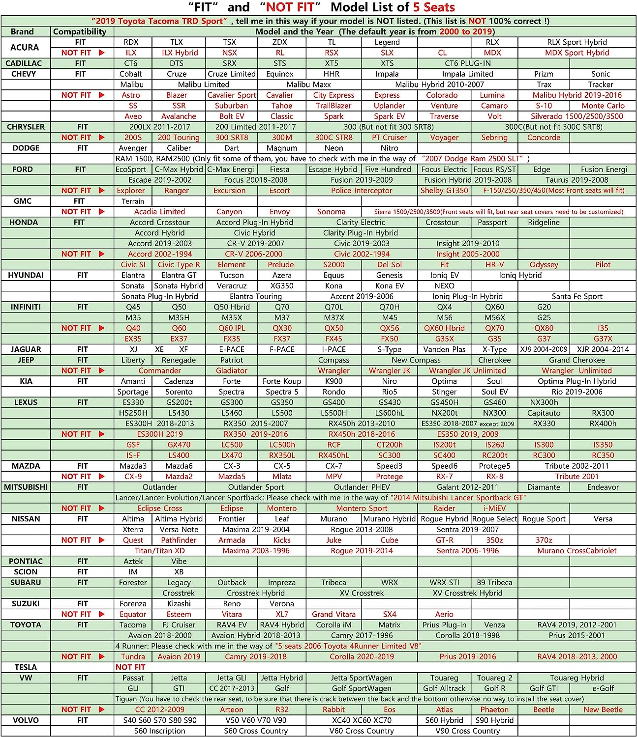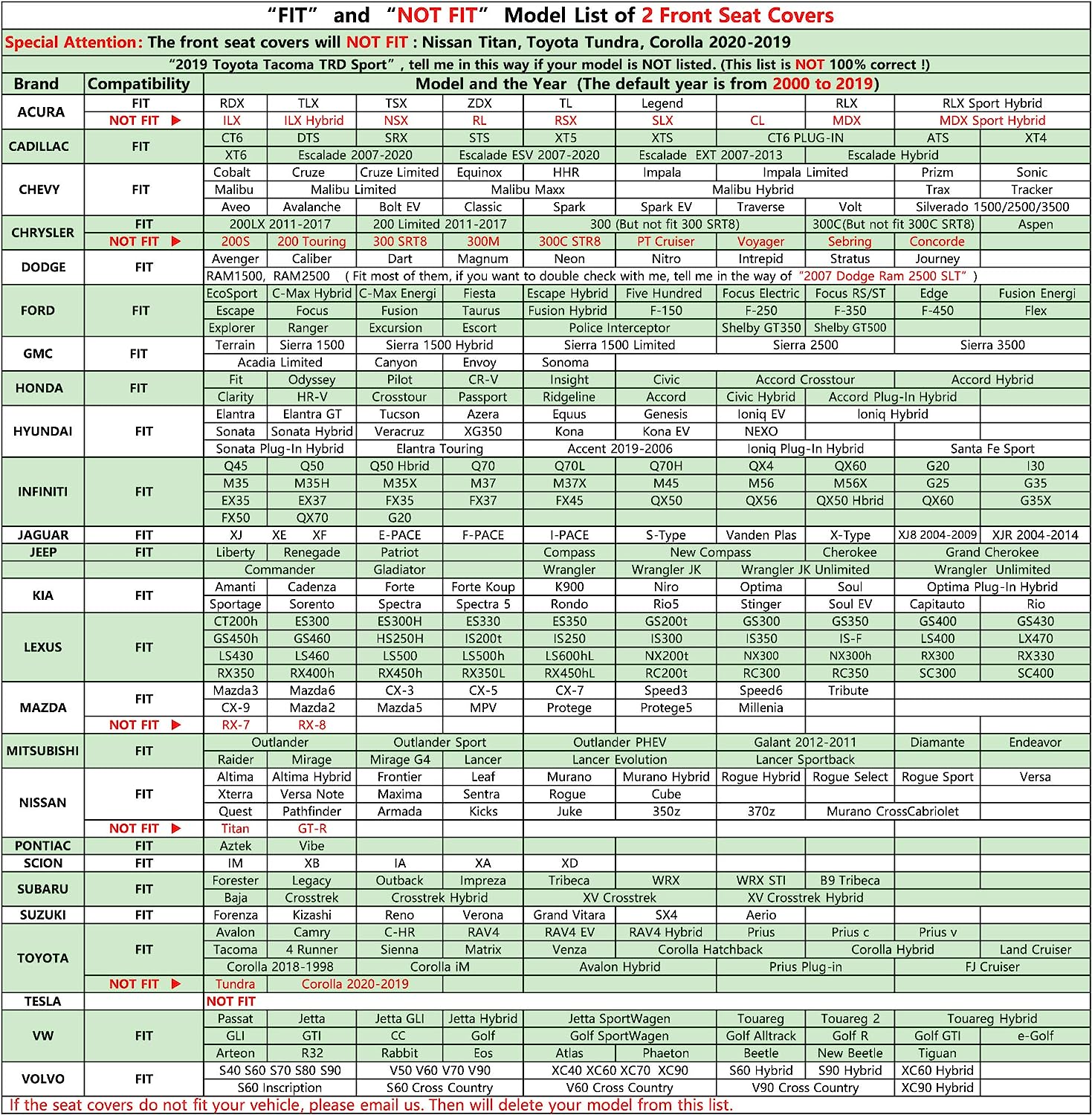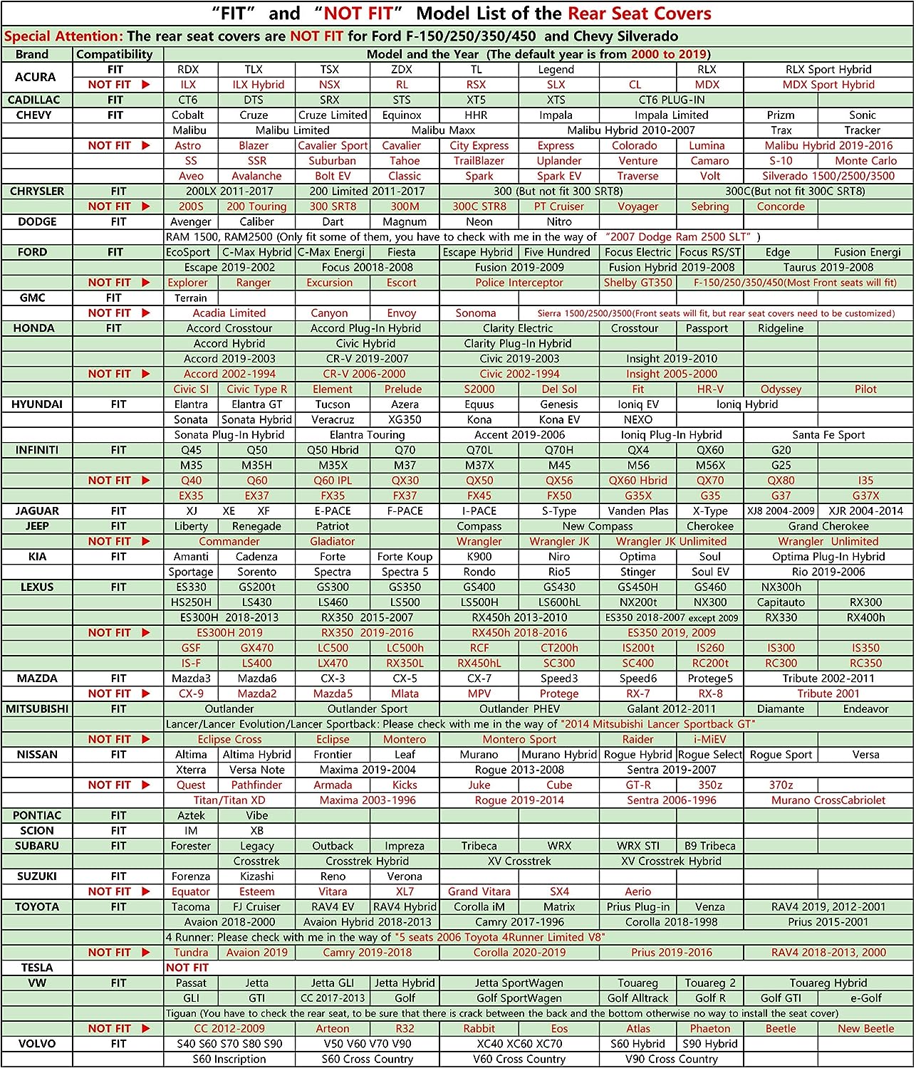 4. UNIVERSAL CAR SEAT PROTECTOR: The car decor fit for most of 5 seats car and covers 95% of car in the market. If you are not sure, please email us your car model and year before order.