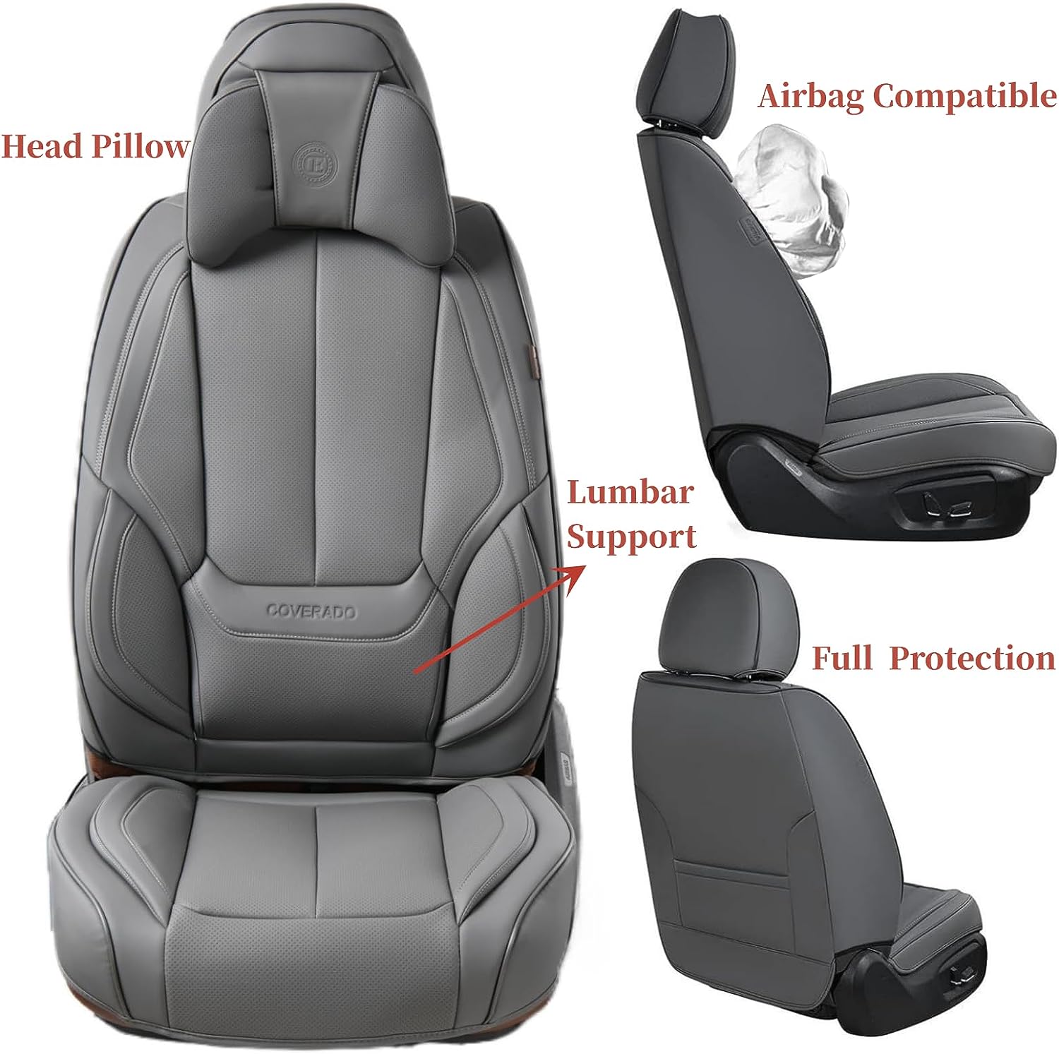 • ✅【UNIVERSAL FIT】: Each pack comes with 2 front seat covers with head pillow and 2 rear seat covers, which are compatible with most Cars, SUV, Truck and Pick-up. You can easily install a custom new look on your seats without any hassles.