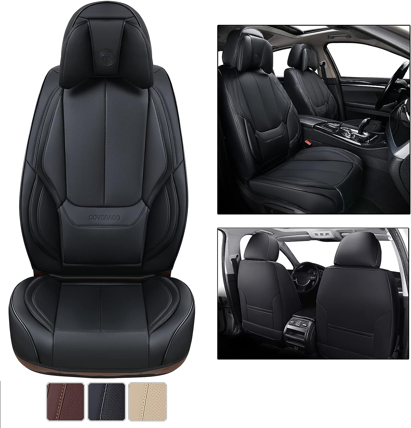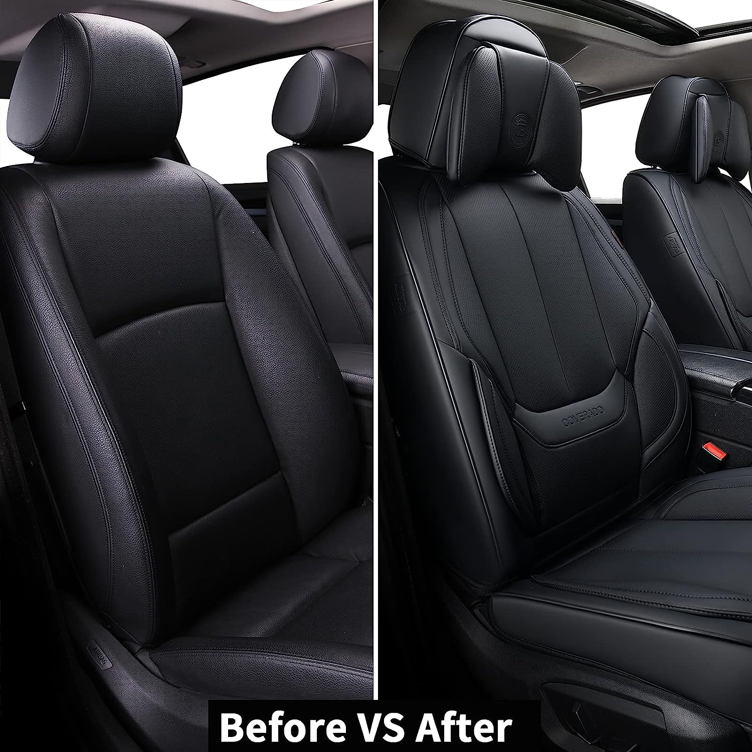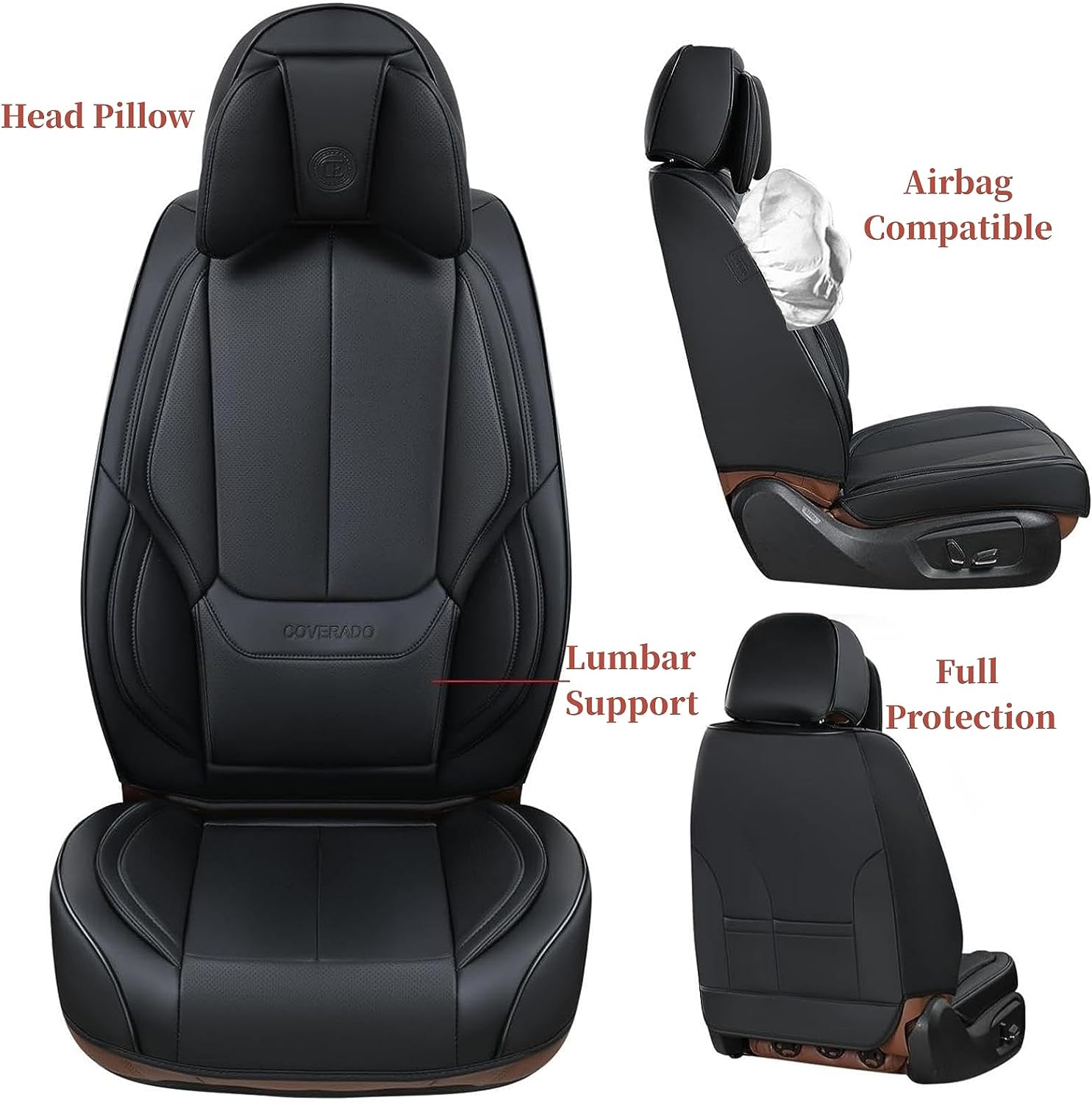 Coverado Car Seat Covers 5 Pieces, Full Set Universal Seat Covers for Cars, Waterproof Nappa Leather Auto Seat Protectors with Head Pillow, Car Interiors Fit for Most Sedans SUV Pick-up Truck, Black