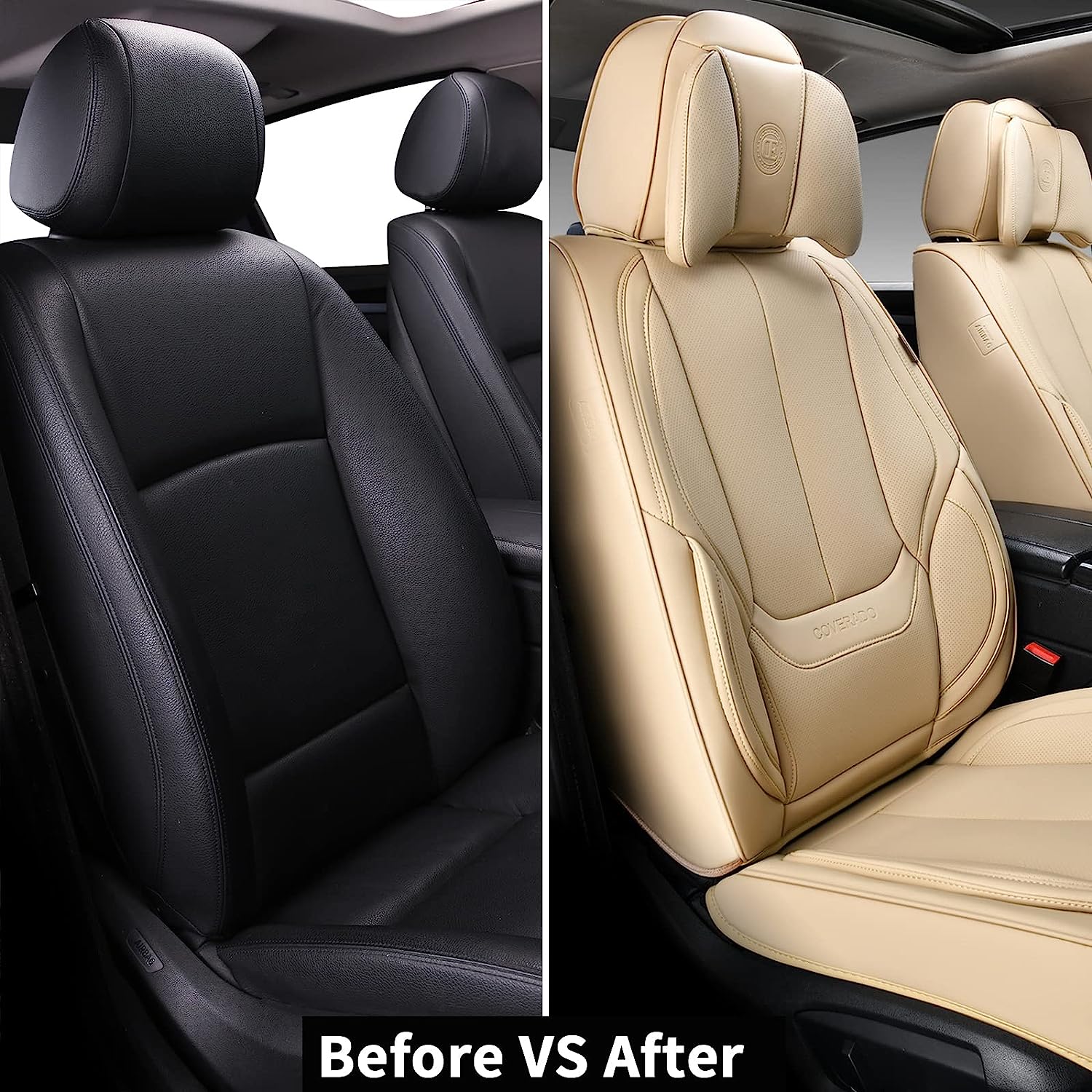 • ✅【SUPERIOR PROTECTION】: seat covers for cars are crafted from premium NAPPA Leather, the seat covers can add great comfort while protect your seats from spills, stains, pet hairs and harmful UV rays. They are resistant to fading, gentle to touch, waterproof, breathable and made for years to come.