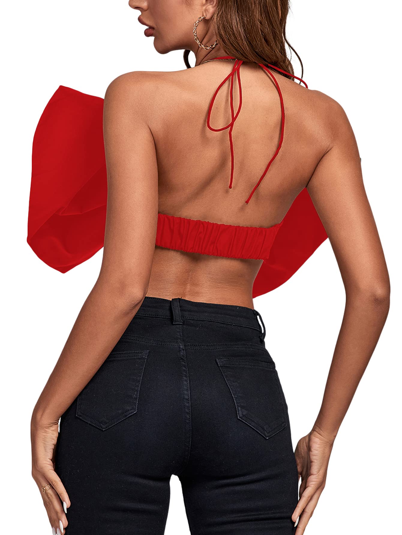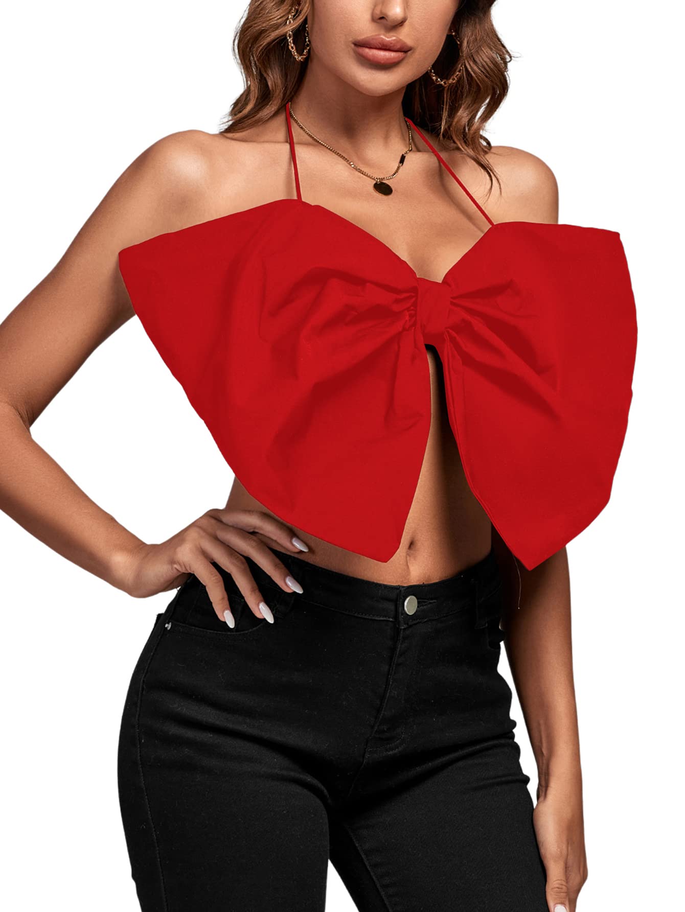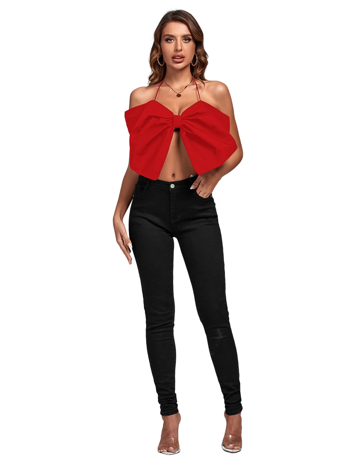 • A well-designed bow tie on the chest and back, elastic back sleeveless top that combines cute and sexy give you the most stylish look of the year.