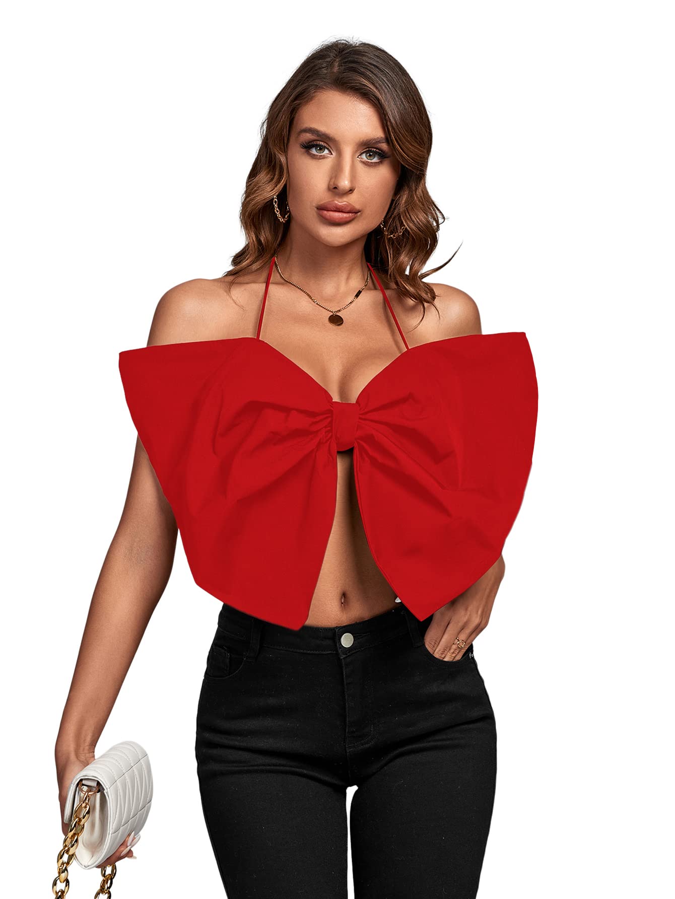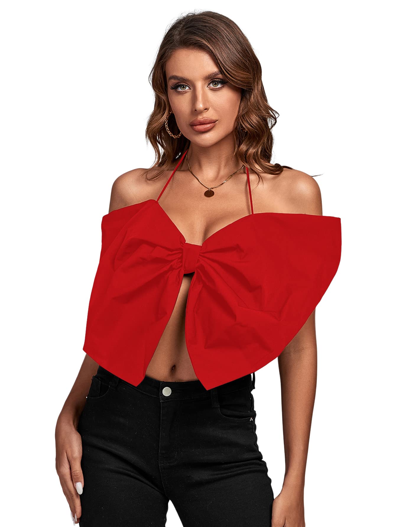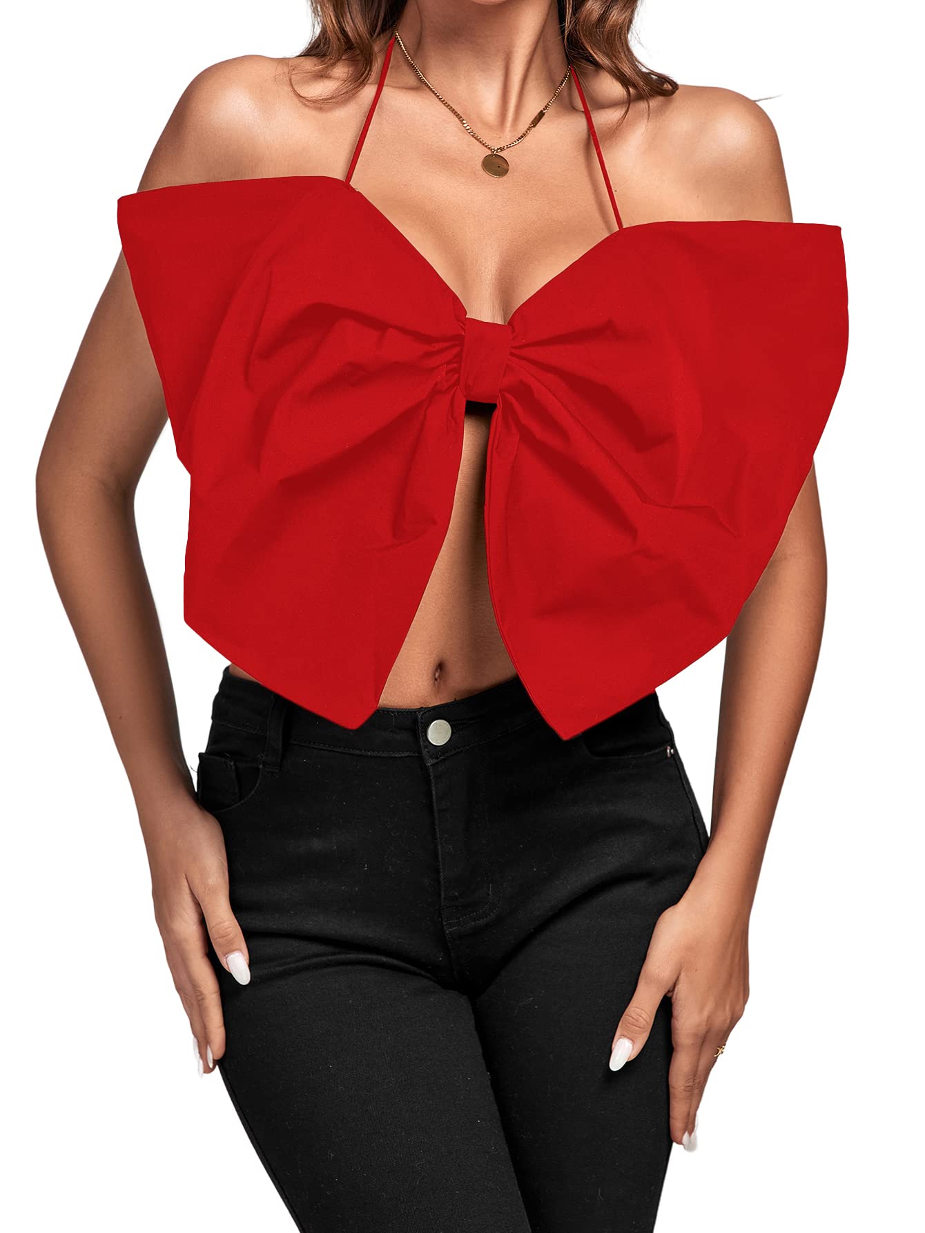 • A well-designed bow tie on the chest and back, elastic back sleeveless top that combines cute and sexy give you the most stylish look of the year.