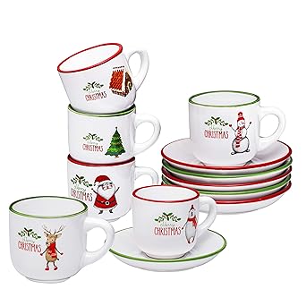 Bruntmor Gift Choice: Espresso Cups And Saucers Set Of 4. Small 4 Ounce Stackable Espresso Cups With Rack. Stacking Espresso Coffee Cup Of 4. Theme, 4 Oz