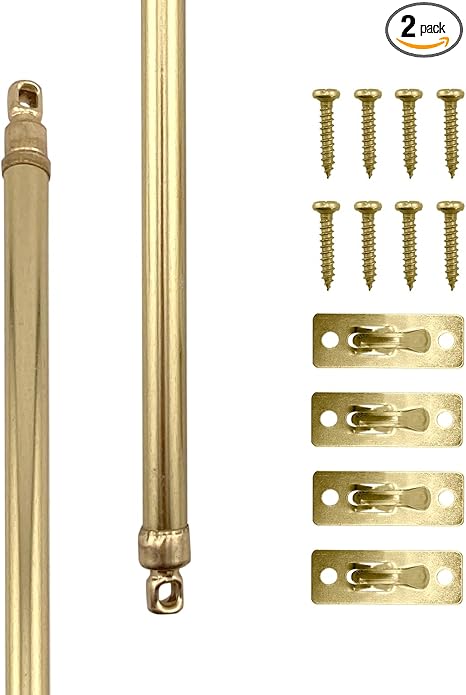 Amazing Drapery Hardware Swivel Sash Curtain Rods with Brass Finish, Set of 2 (Hardware Included) - Adjustable Length 21-38 Inches, Easy to Install Metal Rods for Doors, Windows, and Sidelights