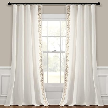 Lush Decor Luxury Modern Flower Linen Like Embroidery Border Window Curtain Panel (Single Panel), 84" L x 52" W, Off-White & Neutral