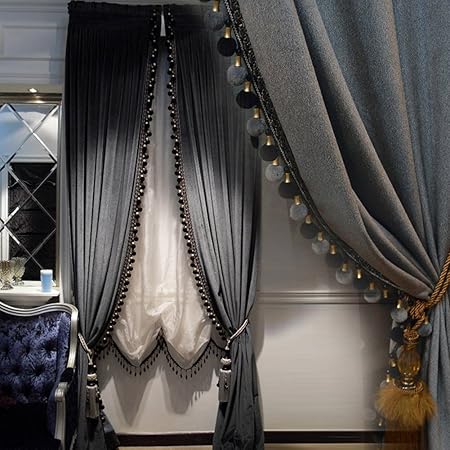 Luxury Curtain for Living Room Blackout Velvet 2 Panels Curtains Set Luxury Tassel Bedroom Curtains (Iron-Grey, (50W�Ê96L)�Ê2)