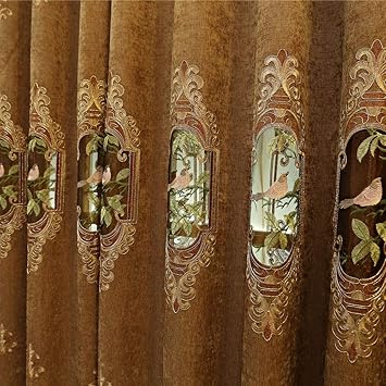 SLOW SOUL Set of 2 Panels Embroidered Birds 80% Blackout Curtains for Living Room Bedroom Dining Room Curtains & Drapes High-end Curtain with Grommet Top Brown Cloth 49W X 96 inch Length