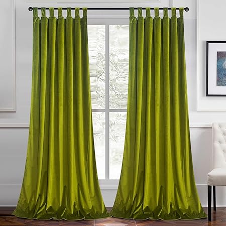 Velvet Curtains 96 inches - Olive Green Thermal Insulated Window Drapes for Living Room, Luxury Modern Home Interior Curtains for Bedroom Sliding Door, W52 x L96, 2 Panels