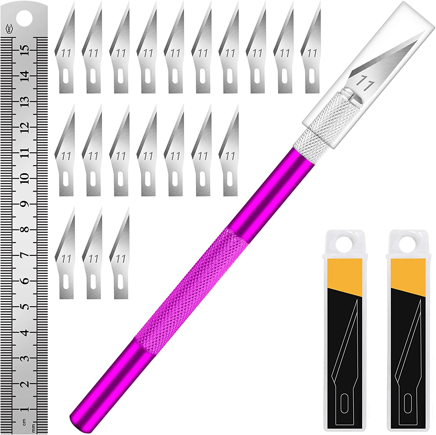 DIYSELF 1 Pcs Craft Knife Hobby Knife Exacto Knife with 11 Pcs Stainless Steel Exacto Blade Kit, 1pcs Steel 15CM Ruler for Art, Scrapbooking, Stencil (Purple)