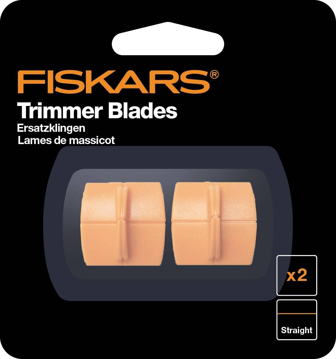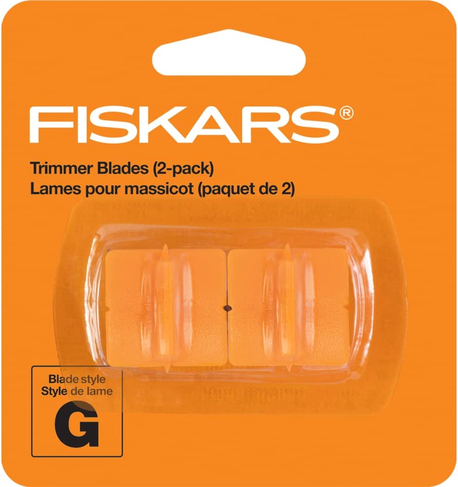 These blade carriages are designed to work with the Fiskars Personal Paper Trimmer only. The carriages snap into the Personal Paper Trimmer rail easily and will cut up to five sheets of 20lb paper or two sheets of business card/greeting card stock. This package contains two refill blade cartridges. Caution: Sharp edge. Handle with care. Imported.
