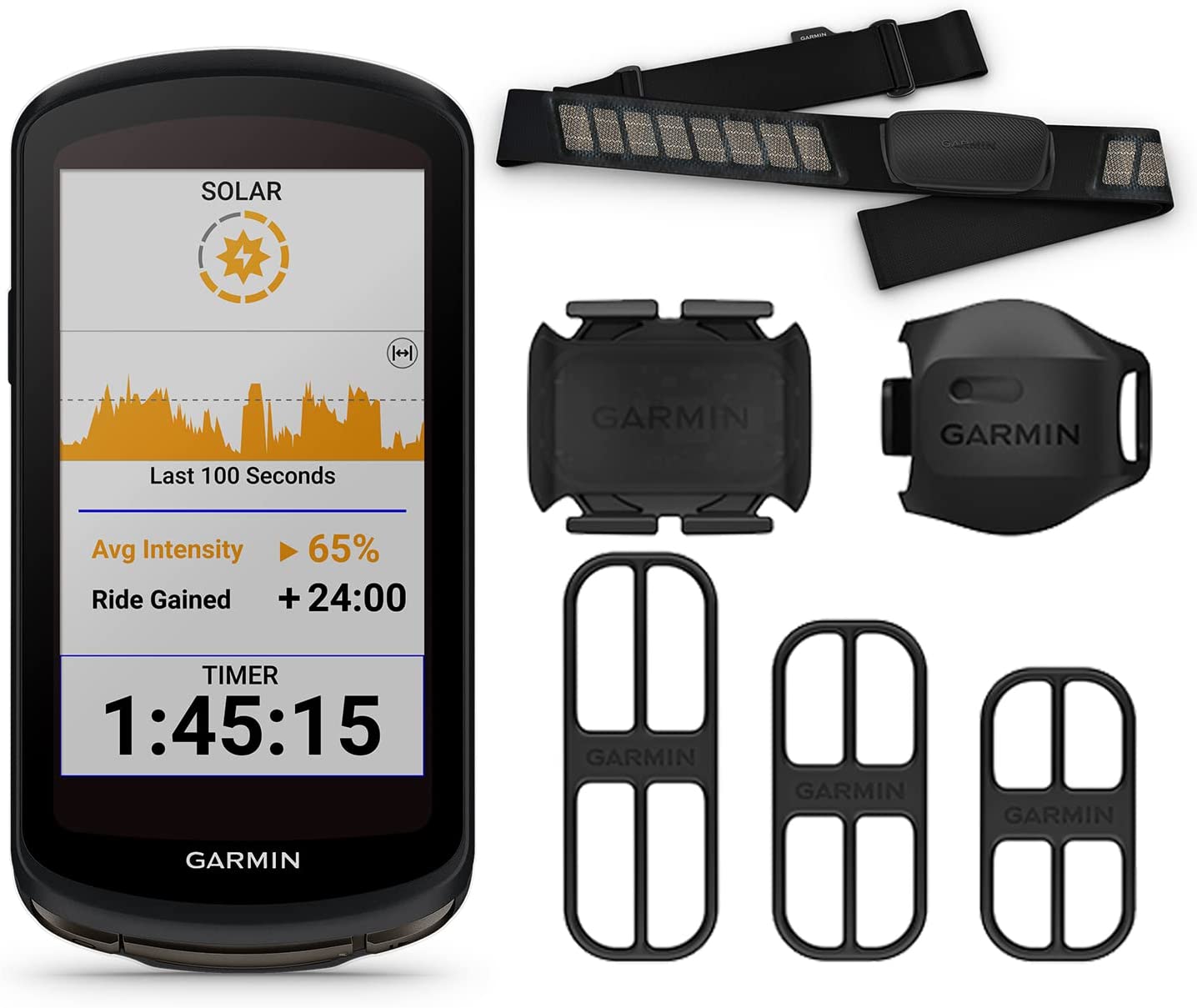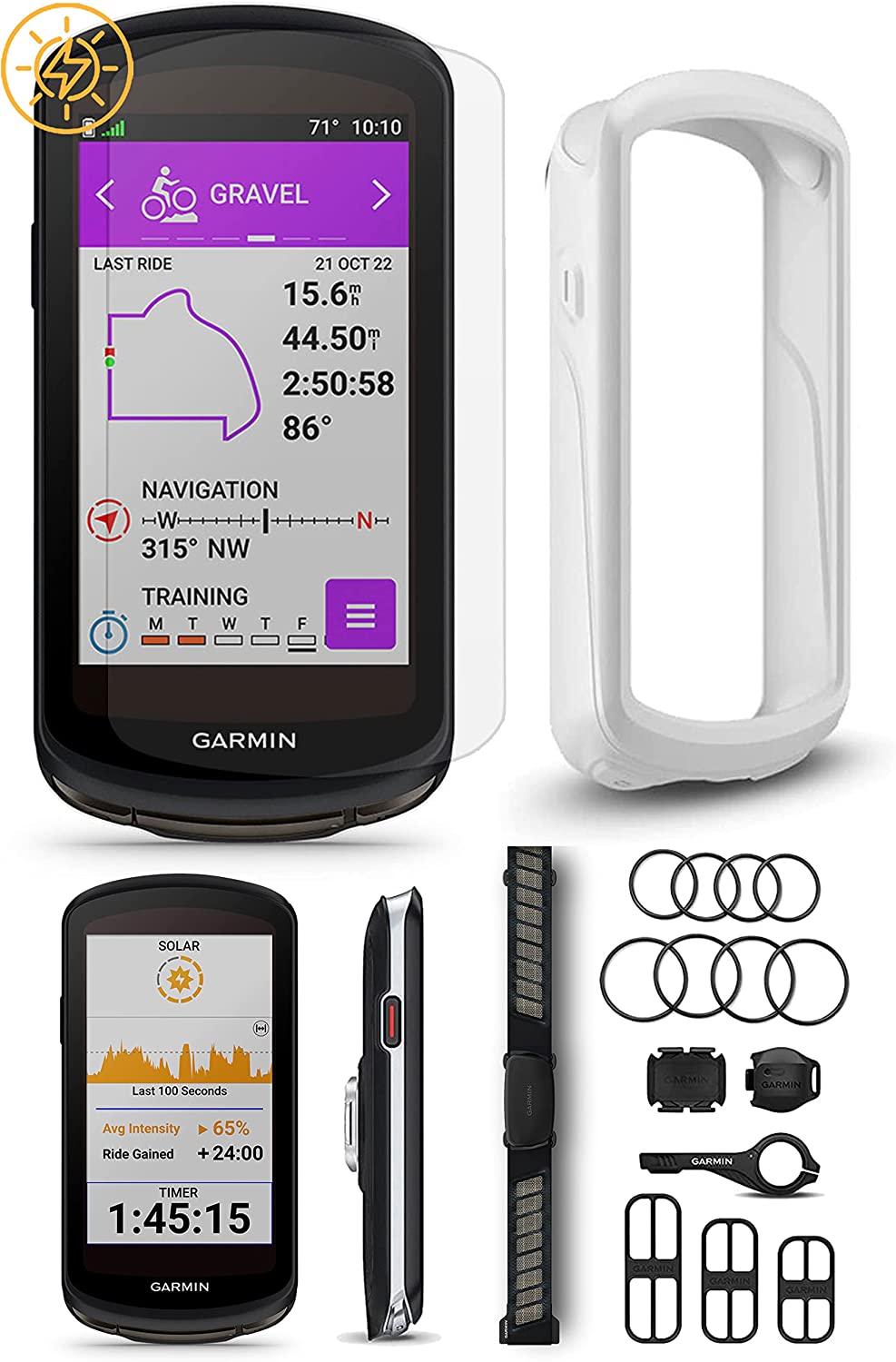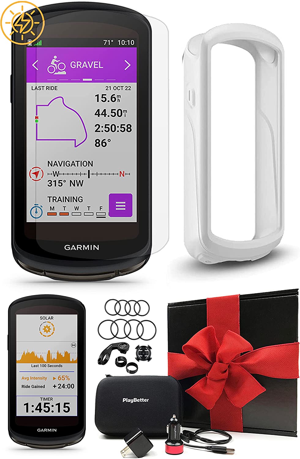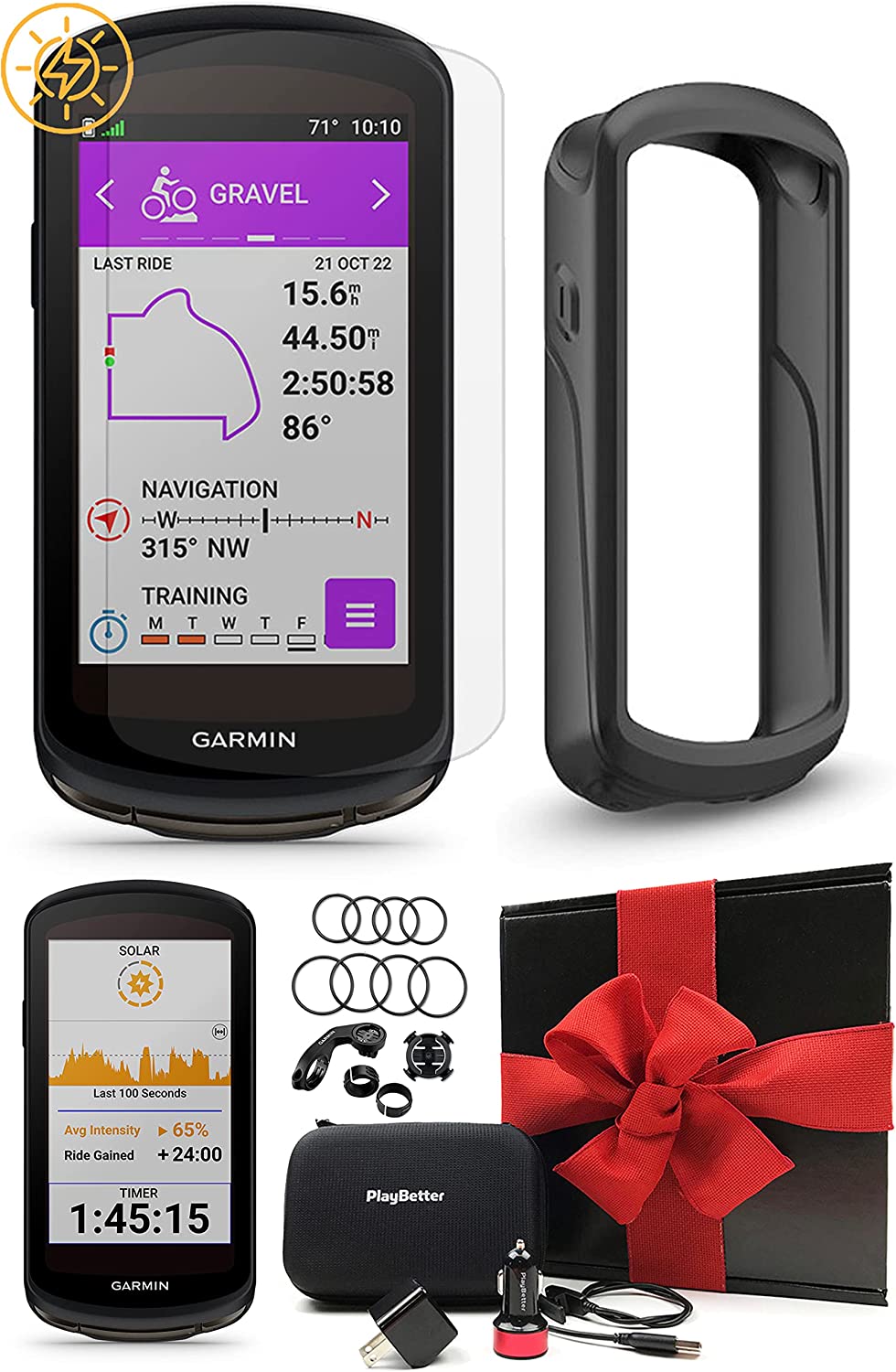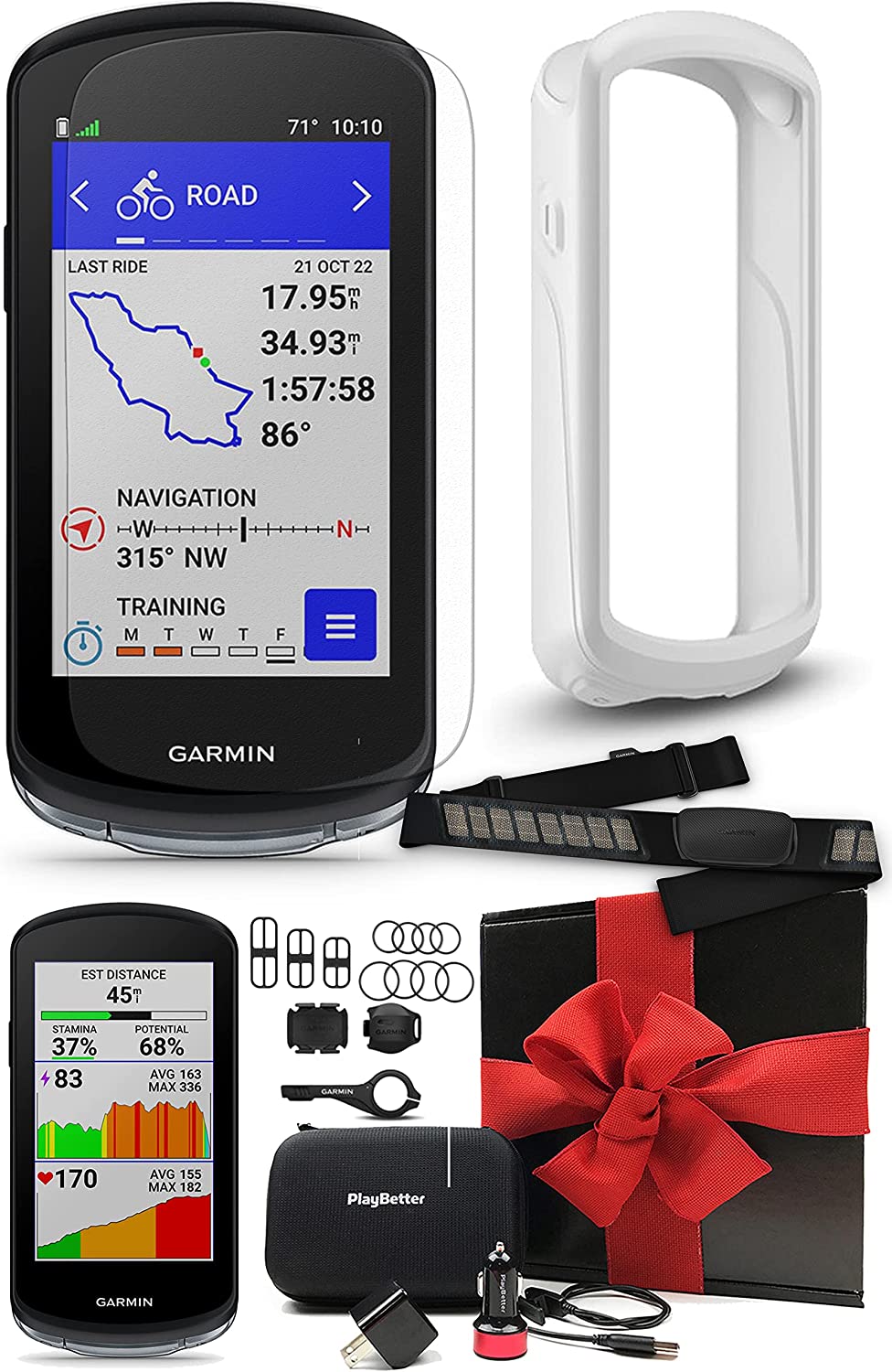 • [GARMIN EDGE 1040 SENSOR BUNDLE] - Garmin Edge 1040 Bicycle Computer (2022 Release), Speed and Cadence Sensor, HRM-Dual Monitor, Mounts (Standard and Out-Front), PlayBetter Protective Silicone Case (Black), PlayBetter HD Tempered Glass Screen Protectors (2-Pack), USB Cable, and Tether