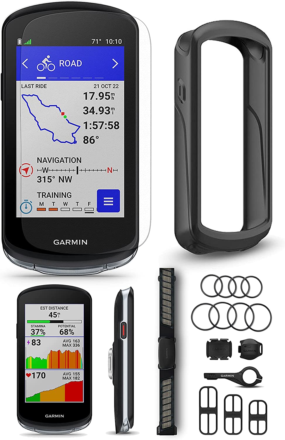 Garmin Edge 1040 GPS Bike Computer with HRM, Speed & Cadence Sensor- 2022 Cycling GPS Computer with VO2 Max, Maps | Cycle Bundle with PlayBetter Tempered Glass Screen, Black Case & Tether