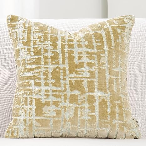 Alerfa 18 x 18 Inch Square Geometrical Plaid Striped Embroidery Cut Velvet Cushion Case Luxury Modern Throw Pillow Cover Decorative Pillow for Couch Sofa Living Room Bedroom Car, Beige