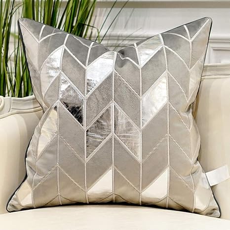 Avigers 18 x 18 Inches Grey Silver Striped Cushion Case Luxury European Throw Pillow Cover Decorative Pillow for Couch Living Room Bedroom Car