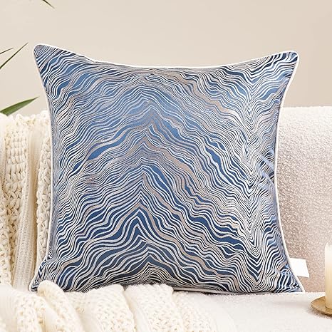 Avigers 20 x 20 Inch Square Navy Blue Silver Gold Abstract Striped Embroidery Cushion Case Luxury Modern Throw Pillow Cover Decorative Pillow for Couch Living Room Bedroom Car