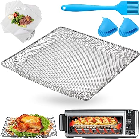Air Fryer Basket for Ninja Foodi SP101 Air Fry Oven, Lancisism Stainless Steel Air Fryer Basket t with 1pcs Oil Brush& 20pcs Oil Paper Compatible with Ninja Foodi SP100 SP101 Air Fry Oven
