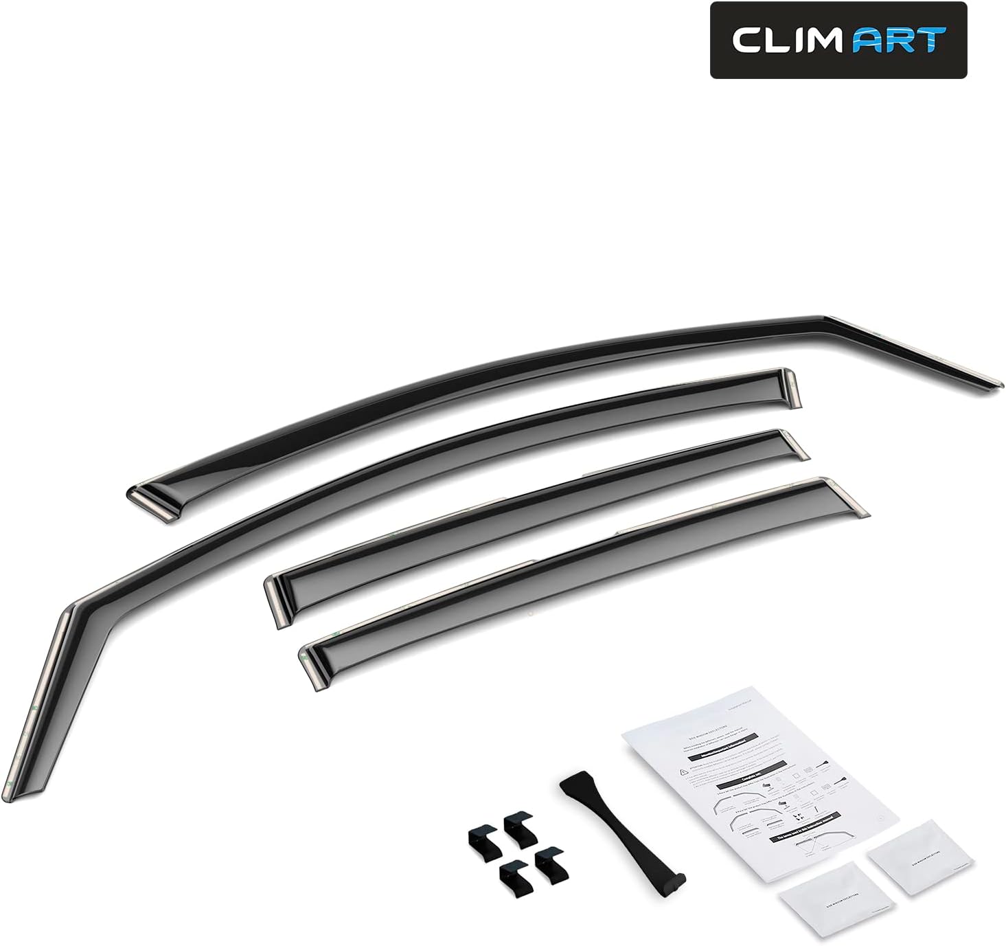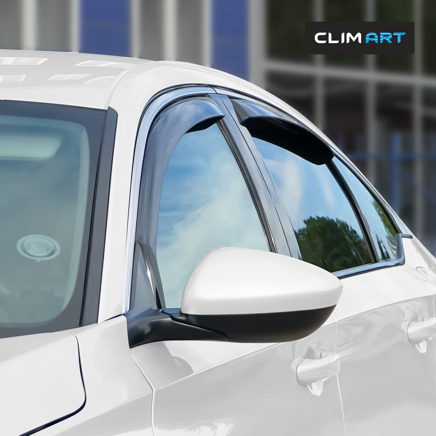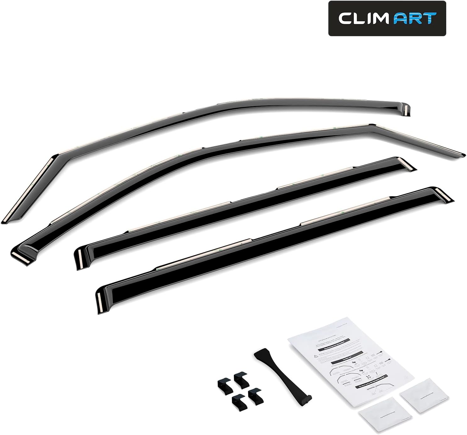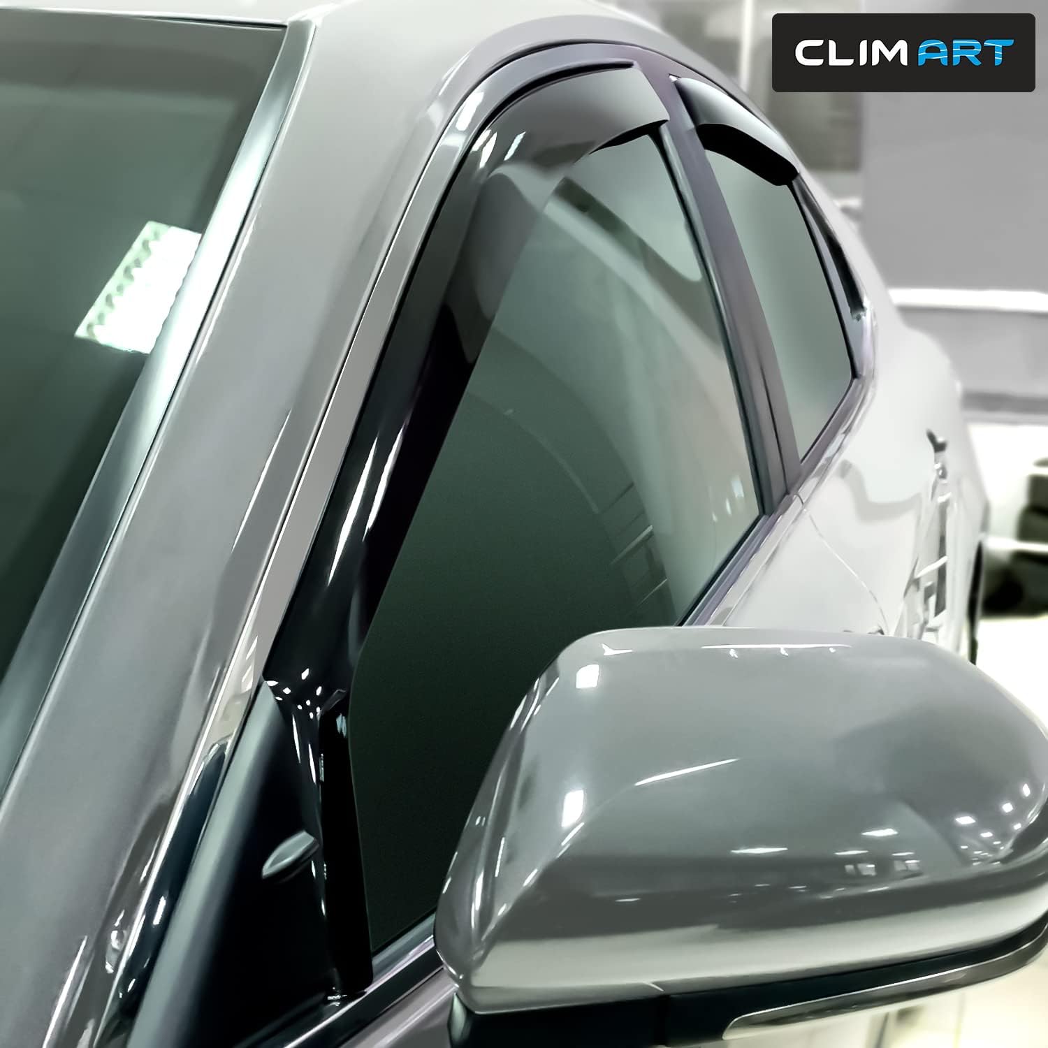 • MAKE CAR RIDES MORE ENJOYABLE — Open the windows and enjoy the breeze as you cruise around, without worrying about the noisy wind, chilly snow, annoying rain sprays/splashes, or the blazing sunshine with CLIM ART side window deflectors. Drive in STYLE & COMFORT with our car accessories - car window shields!