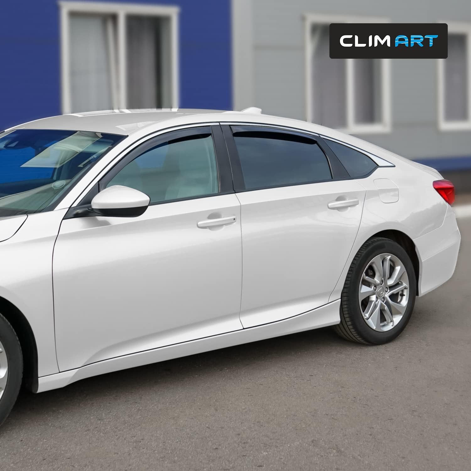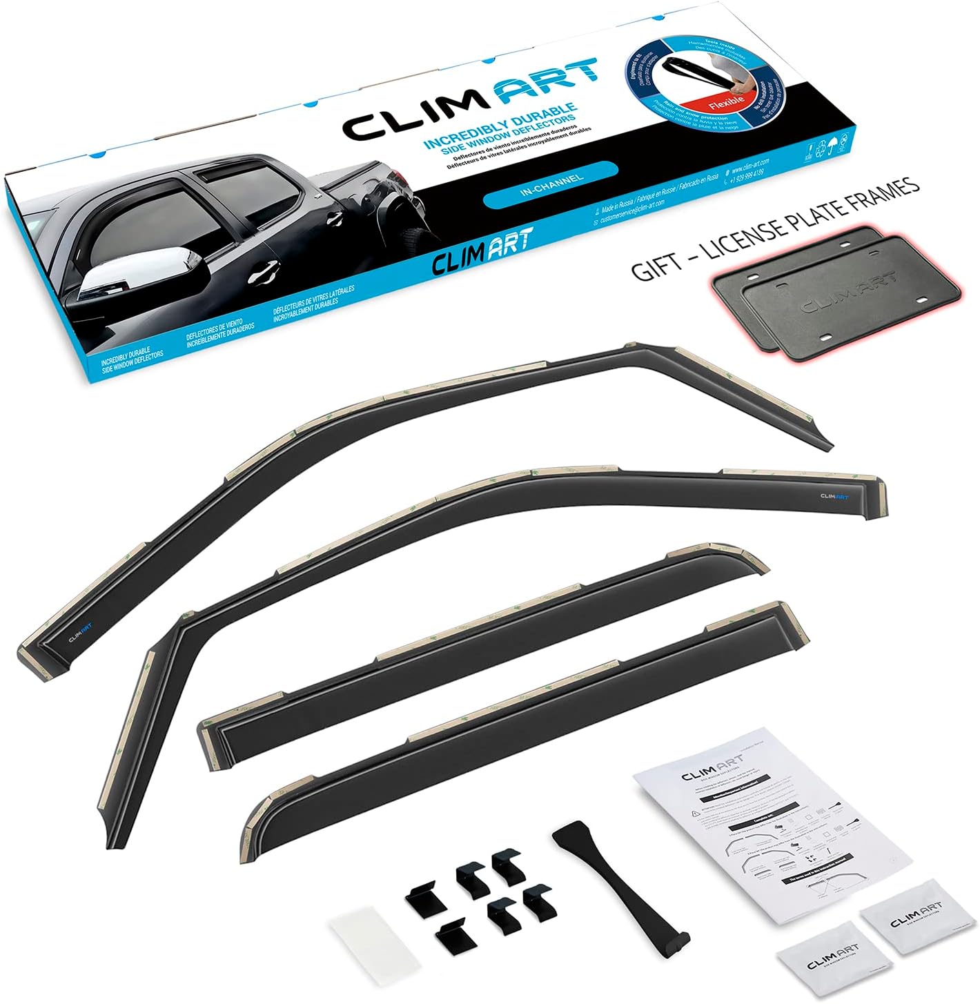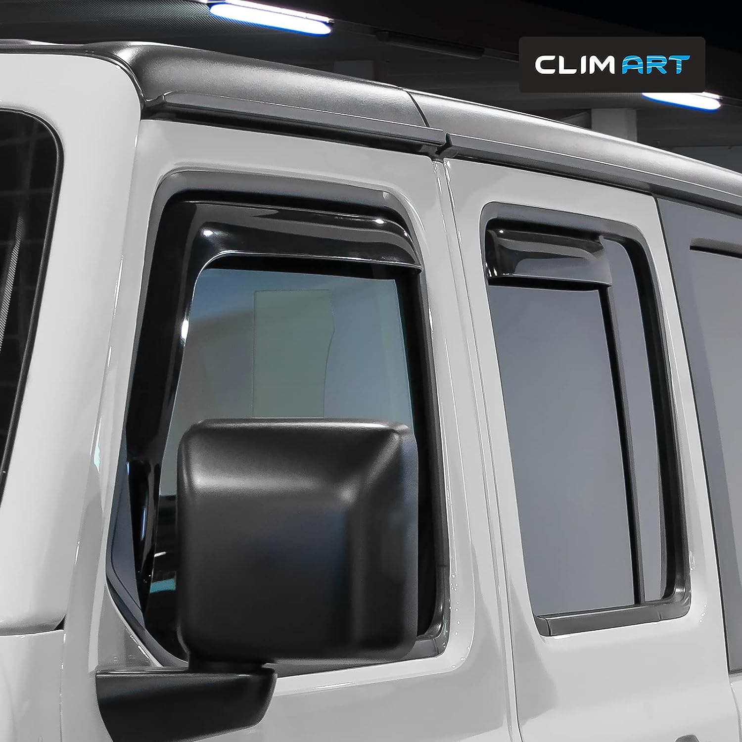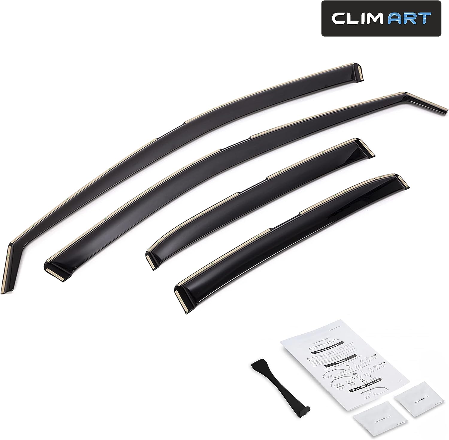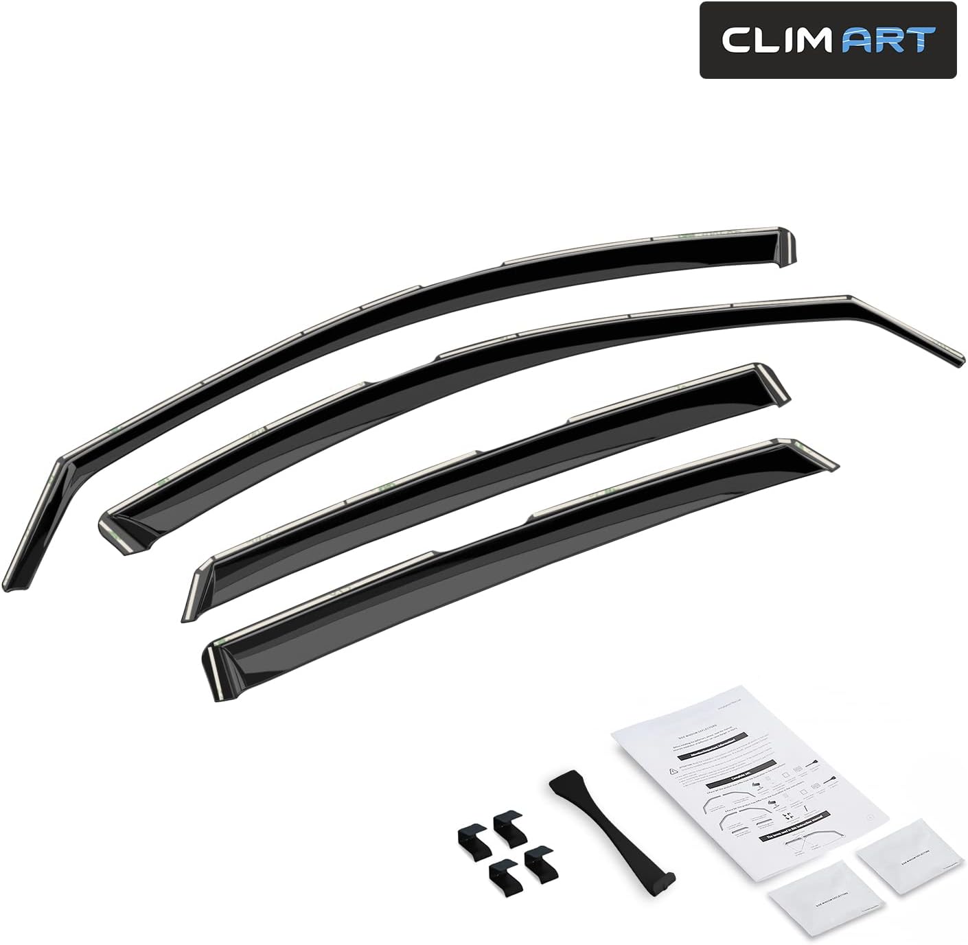 • MAKE CAR RIDES MORE ENJOYABLE — Open the windows and enjoy the breeze as you cruise around, without worrying about the noisy wind, chilly snow, annoying rain sprays/splashes, or the blazing sunshine with CLIM ART side window deflectors. Drive in STYLE & COMFORT with our car accessories - car window shields!
