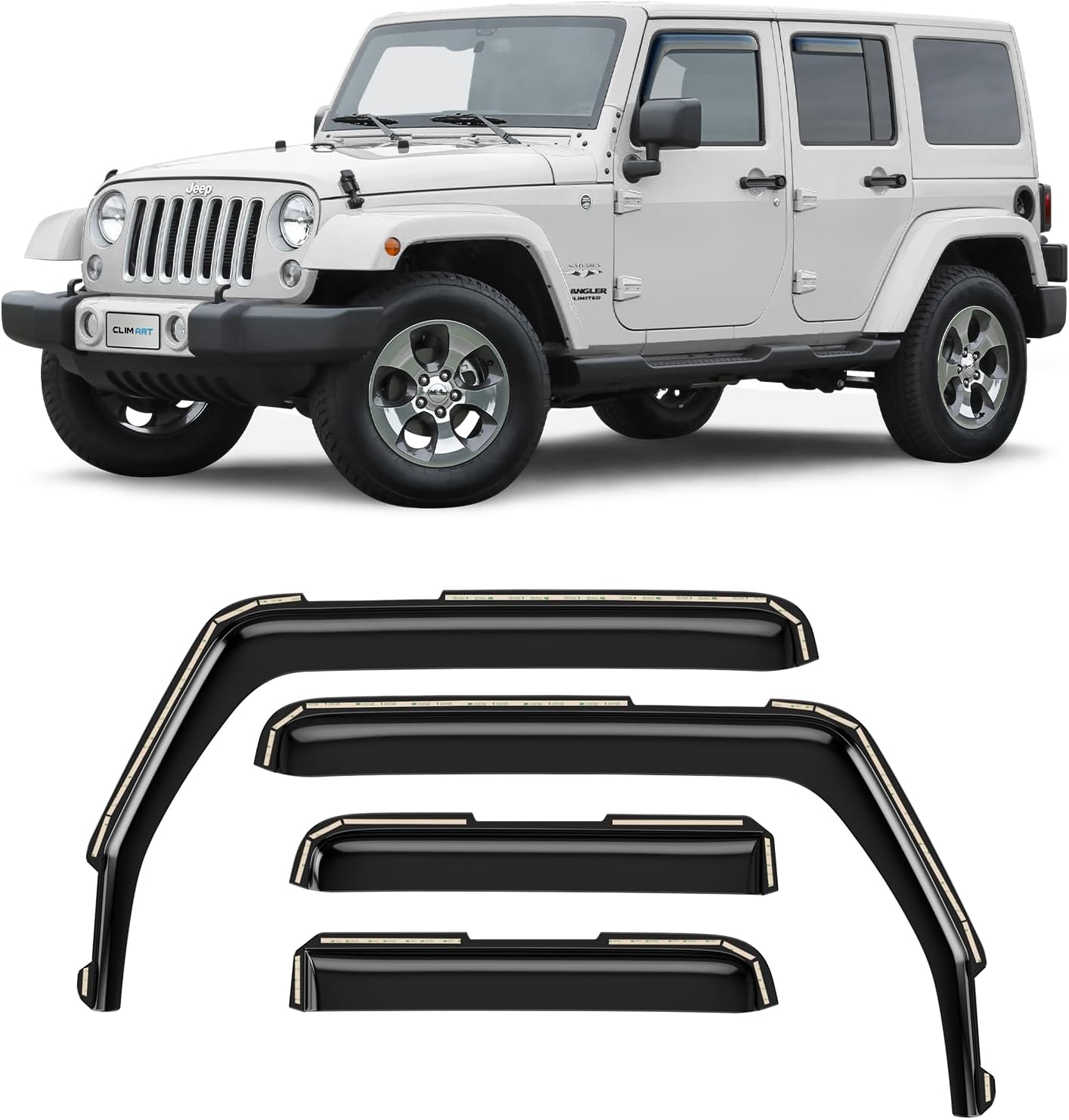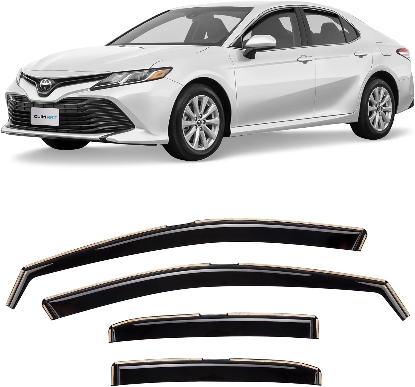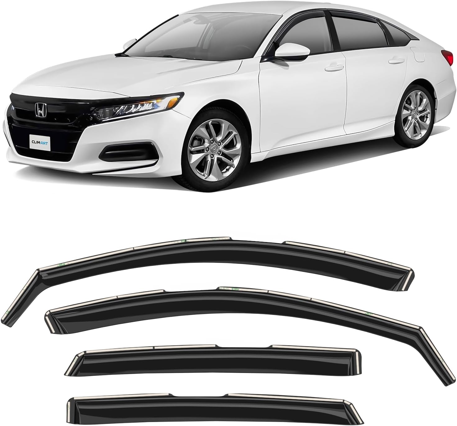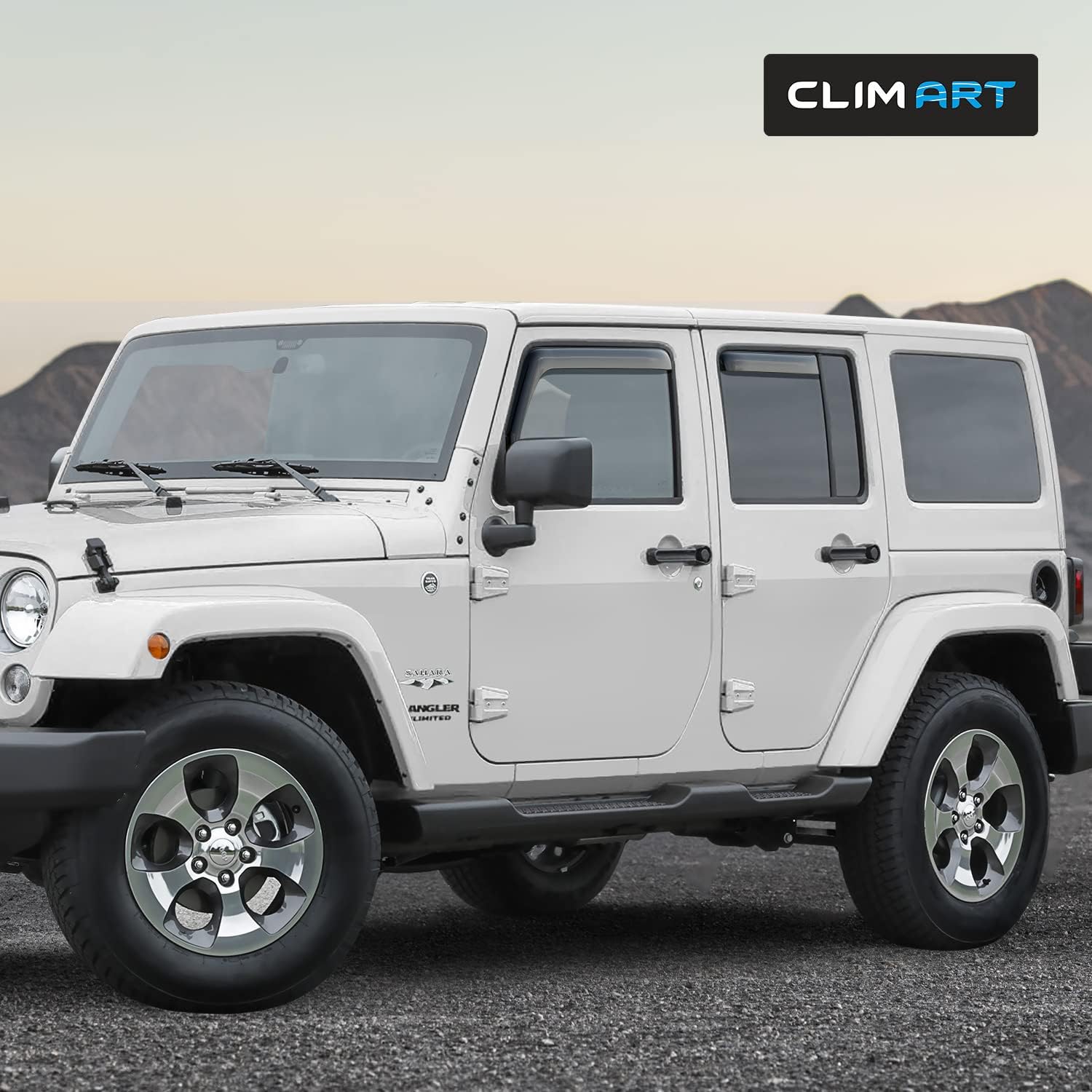 • MAKE CAR RIDES MORE ENJOYABLE — Open the windows and enjoy the breeze as you cruise around, without worrying about the noisy wind, chilly snow, annoying rain sprays/splashes, or the blazing sunshine with CLIM ART side window deflectors. Drive in STYLE & COMFORT with our car accessories - car window shields!