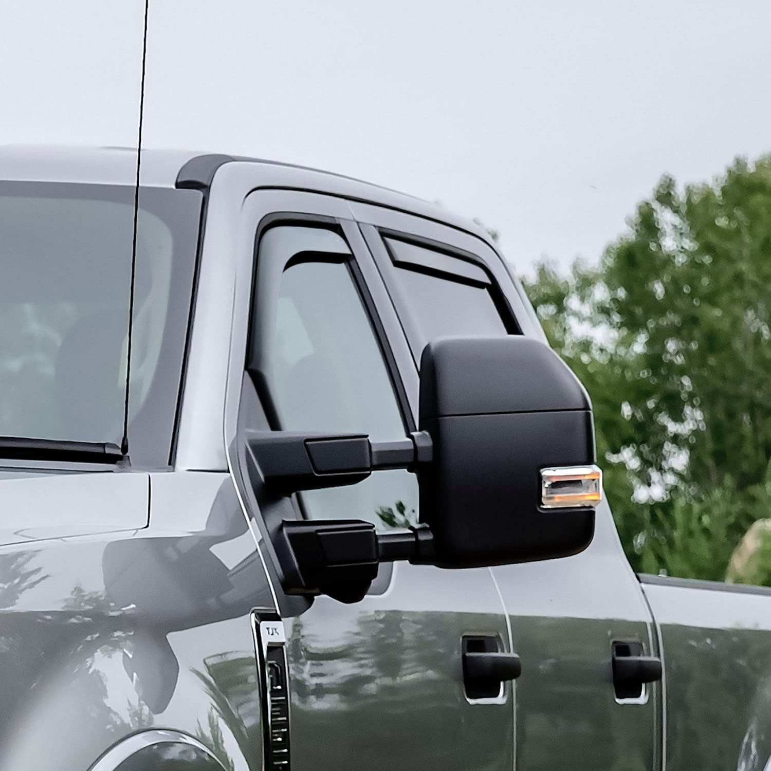 • INCREDIBLY DURABLE & COOL — Made with tough, hardy & shatterproof dark colored premium-quality PC plastic, our window rain guards feature a streamlined flexible design that will not bend, break or crack, while its smart design adds to the look of your truck!