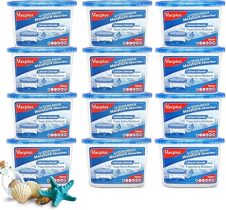 Vacplus Moisture Absorbers 12 Pack, 10.5 Oz, Humidity Absorber Boxes Attracts Extra Moisture from Your Bathroom, Closet, Kitchen, Dehumidifier for Closet (Ocean Scent), Light blue