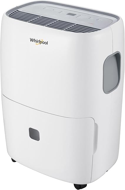 Whirlpool Energy Star 23-Pint Portable Dehumidifier with Auto-Shutoff and Timer, Home Dehumidifier and Moisture Absorber For Basement, Garage, Living Room in White
