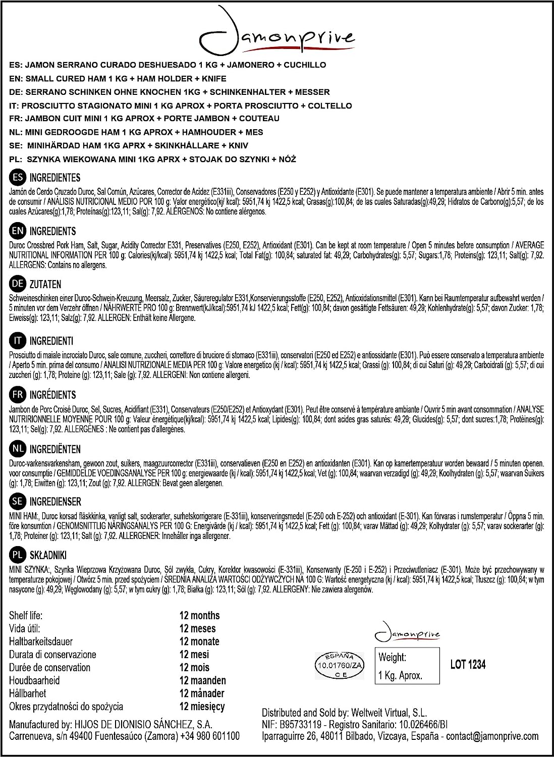 • Makes the perfect gift. This ham includes the ham holder Jamonprive.