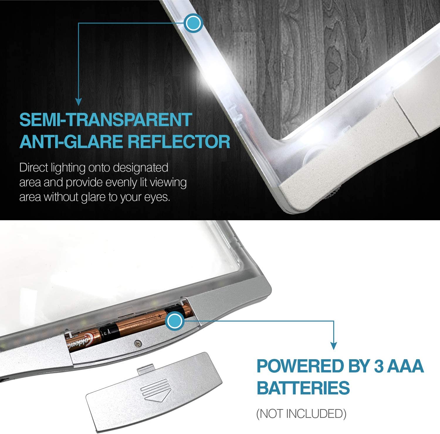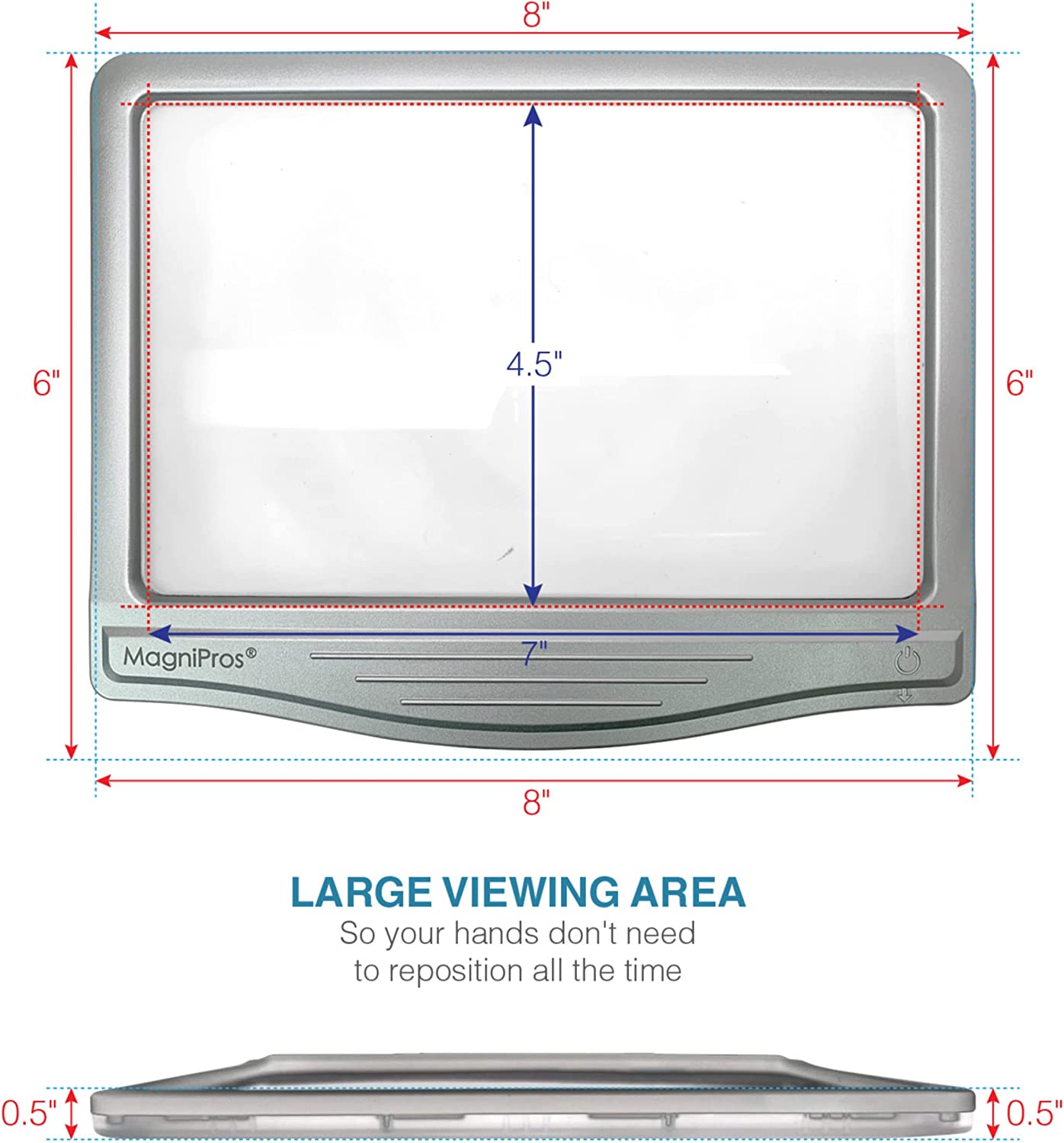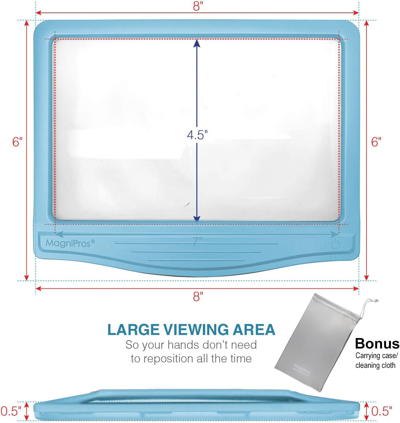• ★ LARGE VIEWING AREA WITH CRYSTAL CLEAR LENS: Optical grade magnifying lens covers large viewing area without having your hands to move all the time, lens(viewing area) is measured 4.5"x 7" and magnifies up to 300%.