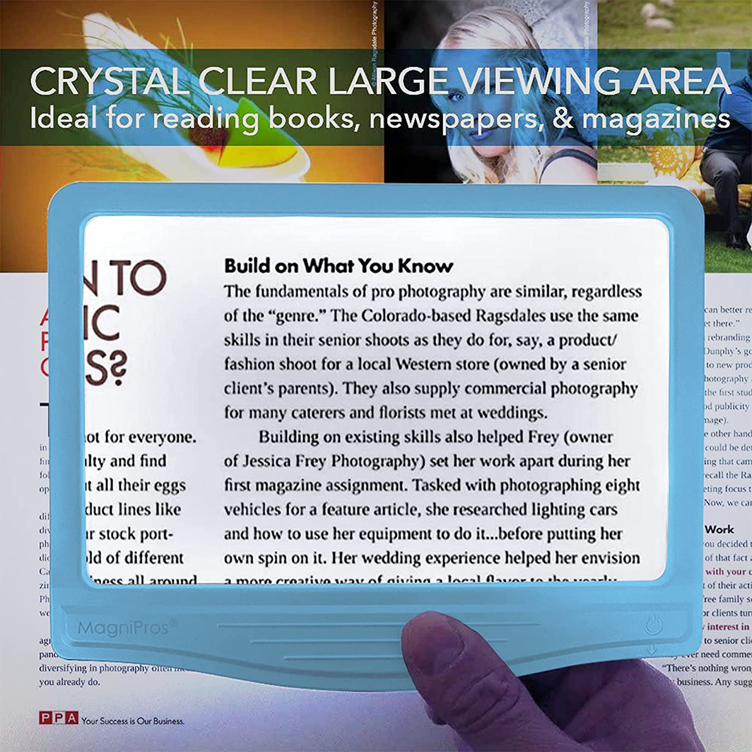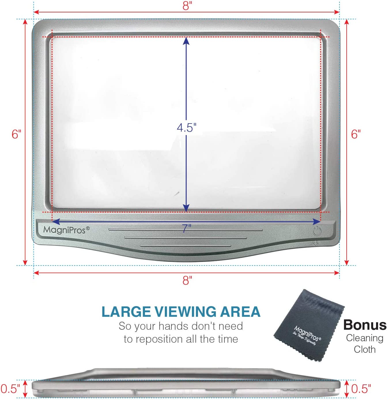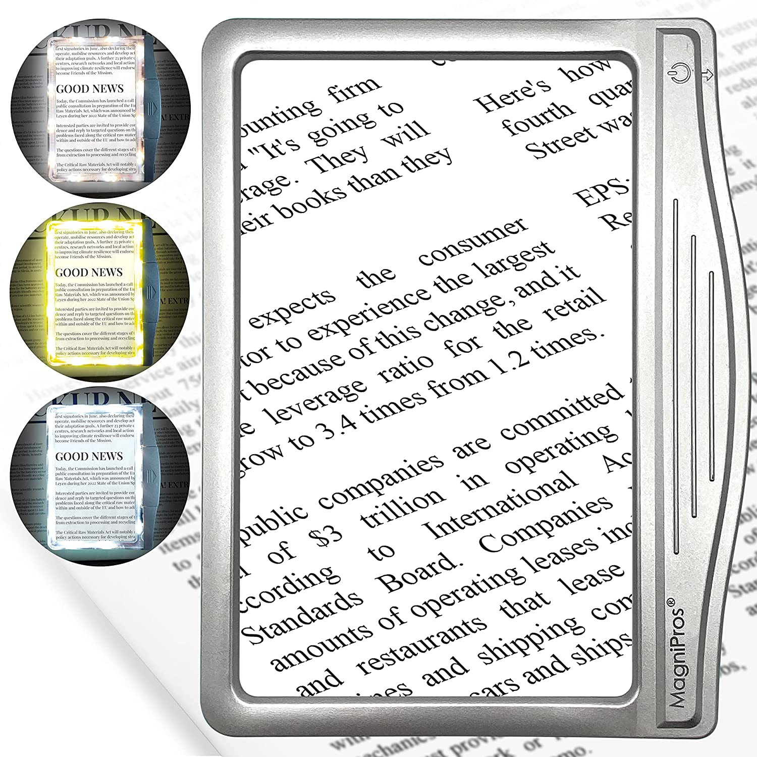 MagniPros 3X Large Ultra Bright LED Page Magnifier with Anti-Glare Dimmable LEDs(Evenly Lit Viewing Area & Relieve Eye Strain)-Ideal for Reading Small Prints & Low Vision