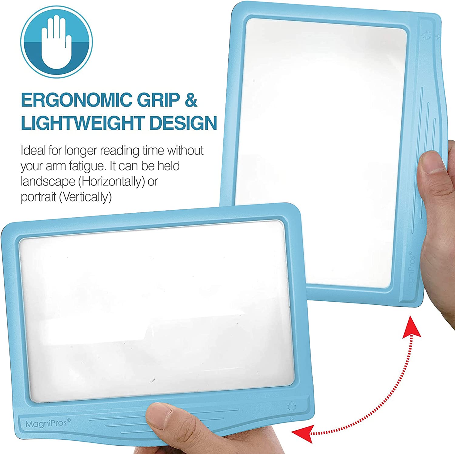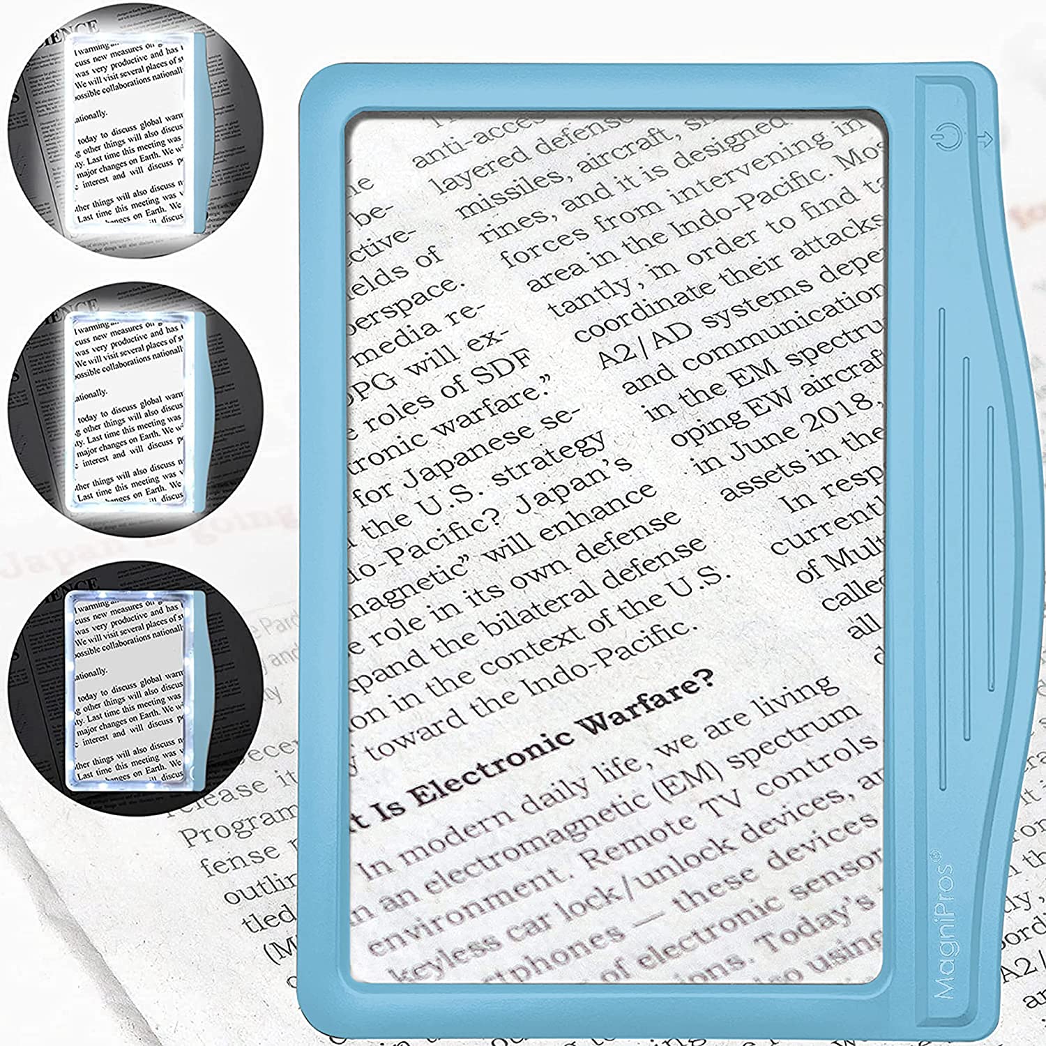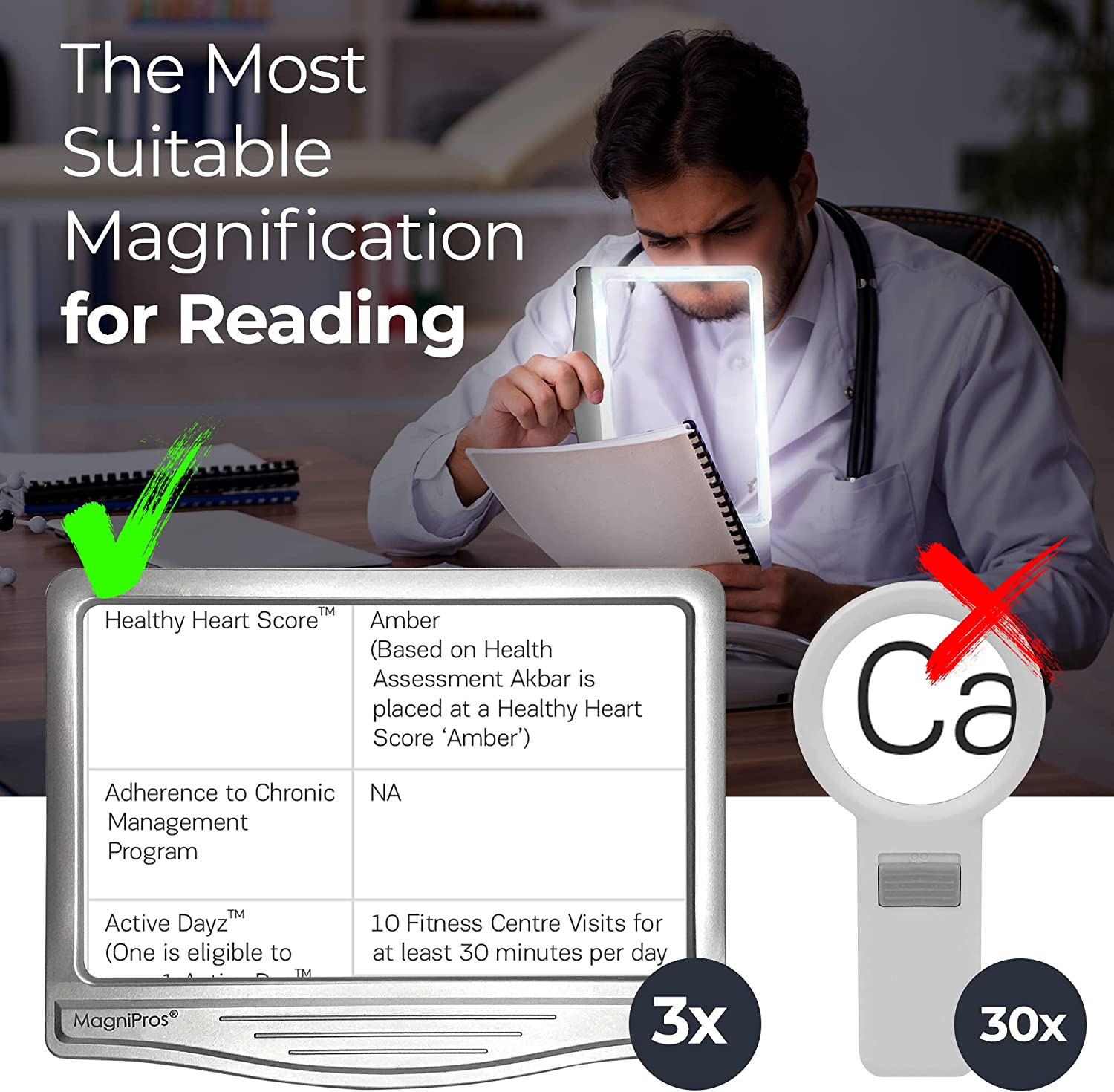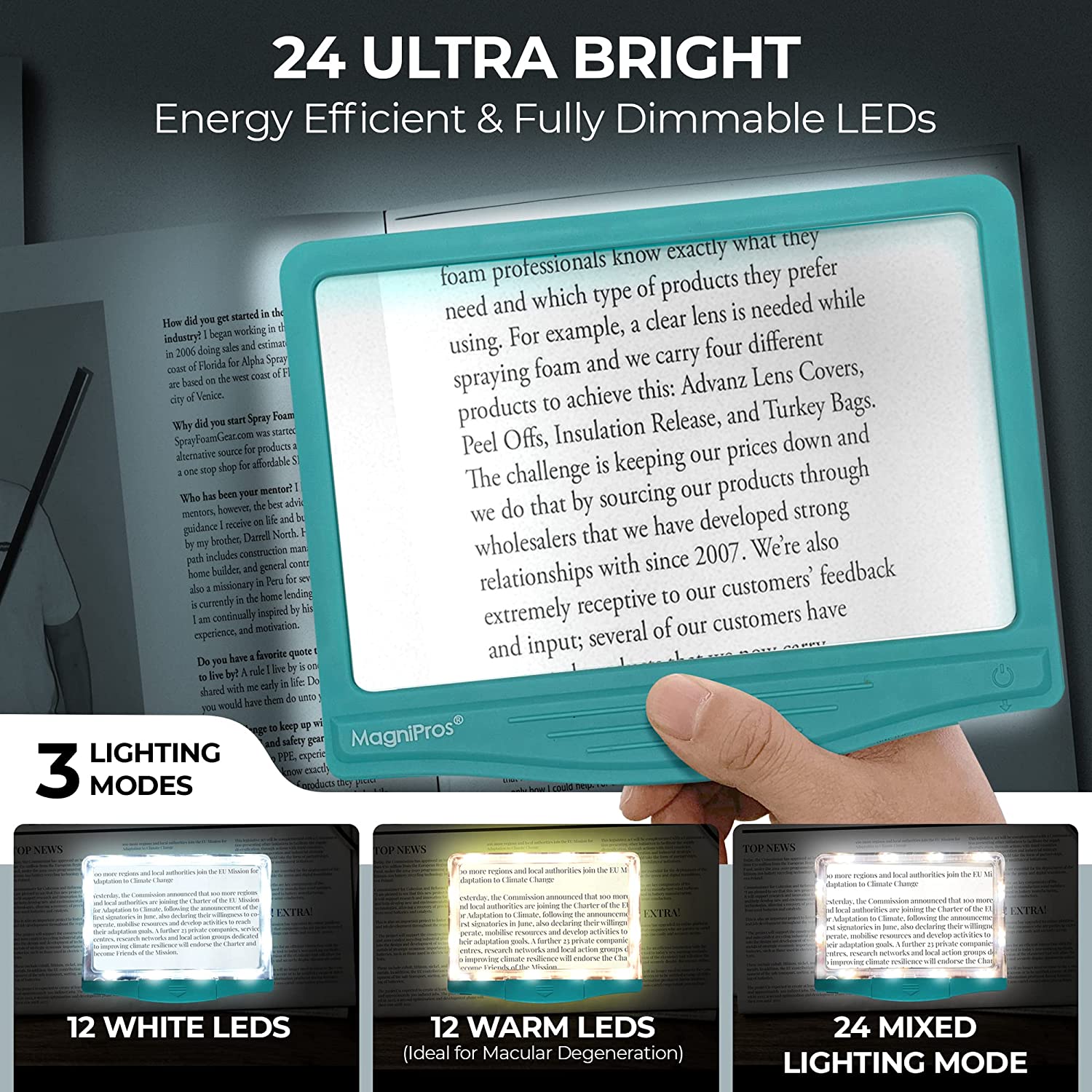 MagniPros 3X Large Ultra Bright LED Page Magnifier with Anti-Glare Dimmable LEDs(Evenly Lit Viewing Area & Relieve Eye Strain)-Ideal for Reading Small Prints & Low Vision