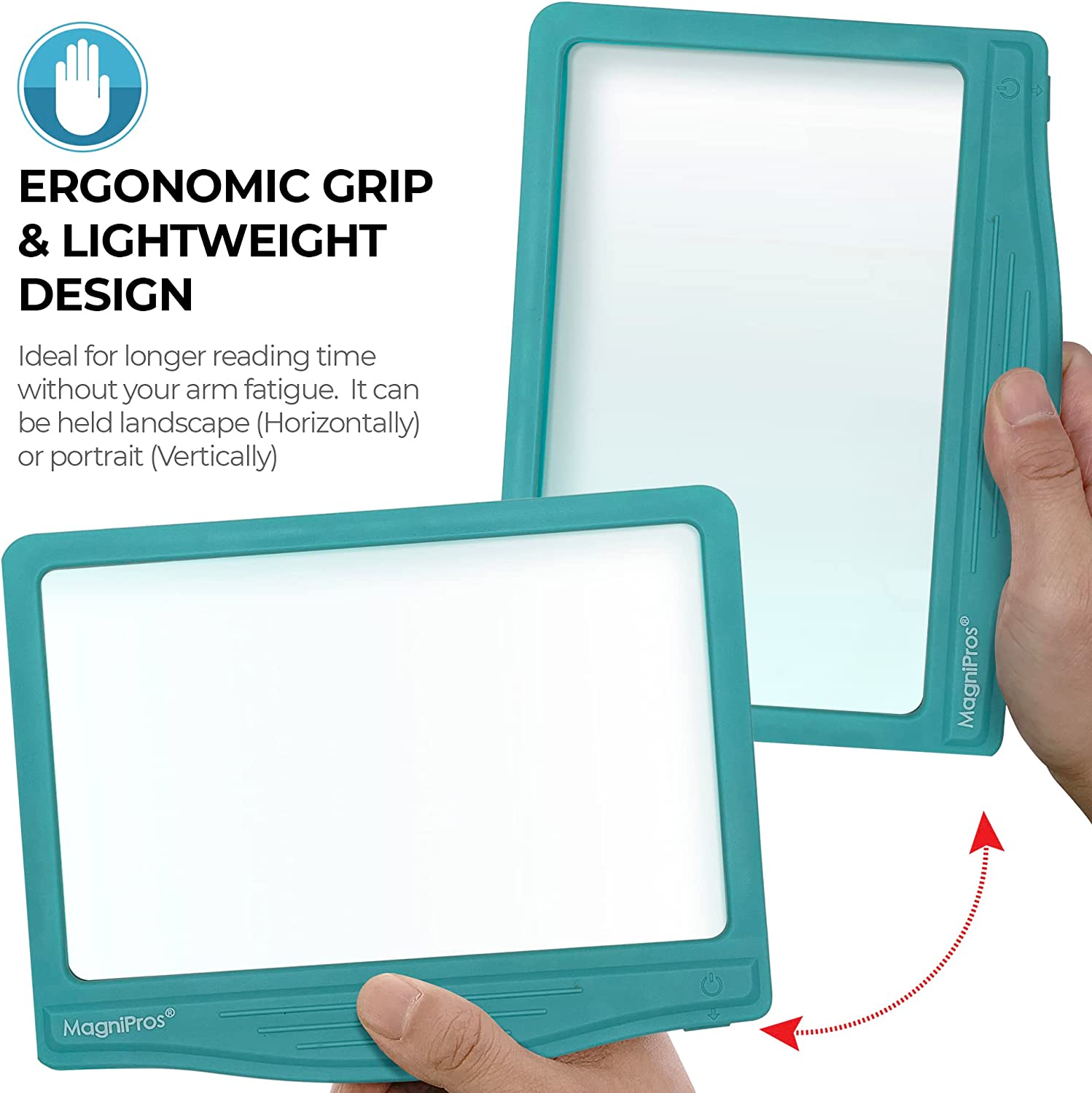 • ★ LIGHTWEIGHT & ERGONOMIC DESIGN: The unit itself only weights 4 ounces, and the grip of this LED magnifier is ergonomically designed for most hands,therefore, ideal for long reading time.