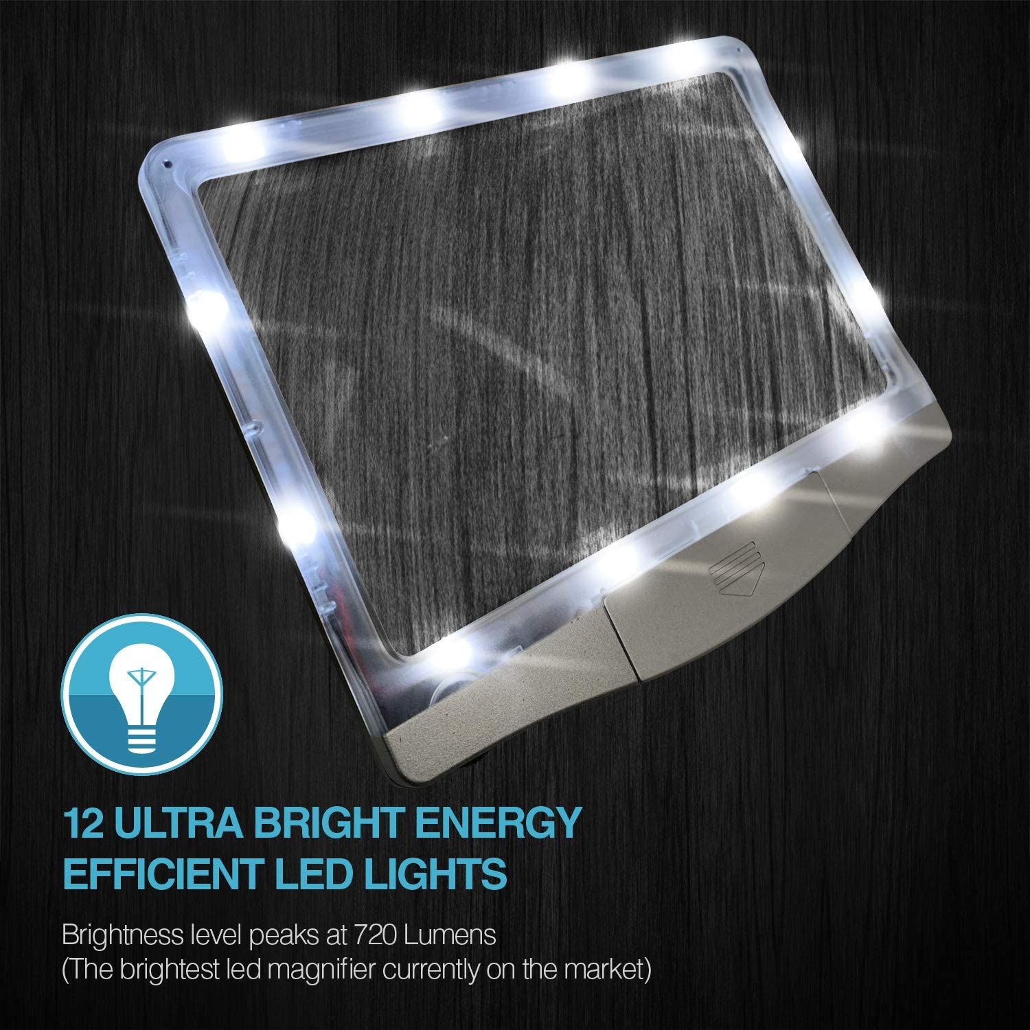 • ★ THE MOST ADVANCED LIGHTING SYSTEM ON MAGNIFIER: This led magnifier is equipped with 12 SMD led lights which are covered by anti-glare reflector, therefore, lighting will be directed to an designated area without glare to your eyes, and provide evenly lit viewing area.