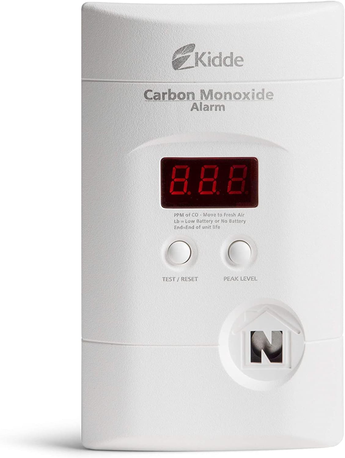 The Kidde Carbon Monoxide Detector, Plug In Wall with 9-Volt Battery Backup, Digital LED Display uses electrochemical sensor technology to detect poisonous CO gas in your home and alert you by sounding an 85-decibel alarm. Setup is easy as the Kidde carbon monoxide alarm plugs into a standard, 120V AC power outlet in your home, while a 9-volt alkaline battery (included) works as a backup in the event of a power failure. When carbon monoxide is detected, the digital display shows the level of carbon monoxide the alarm is sensing and updates every 15 seconds. Peak Level Memory records the last time carbon monoxide was detected or when the unit was tested. The Smart-Hush button silences the unit for approximately 8 minutes, which is helpful when this smoke detector carbon monoxide detector combo sounds from things like routine cooking or shower steam. Extension cord (included) allows for placement on a table or shelf. Install a carbon monoxide smoke detector combo on every level of your home and near bedrooms to help keep your family safe. UL Certified with a 10-year limited manufacturer's warranty. Meets requirements of UL 2034, UL217, NFPA72, (chapter 11 2002 edition) The State of California Fire Marshal, NFPA101 (One and two family dwellings) Federal Housing Authority (FHA), Housing and Urban Development (HUD).