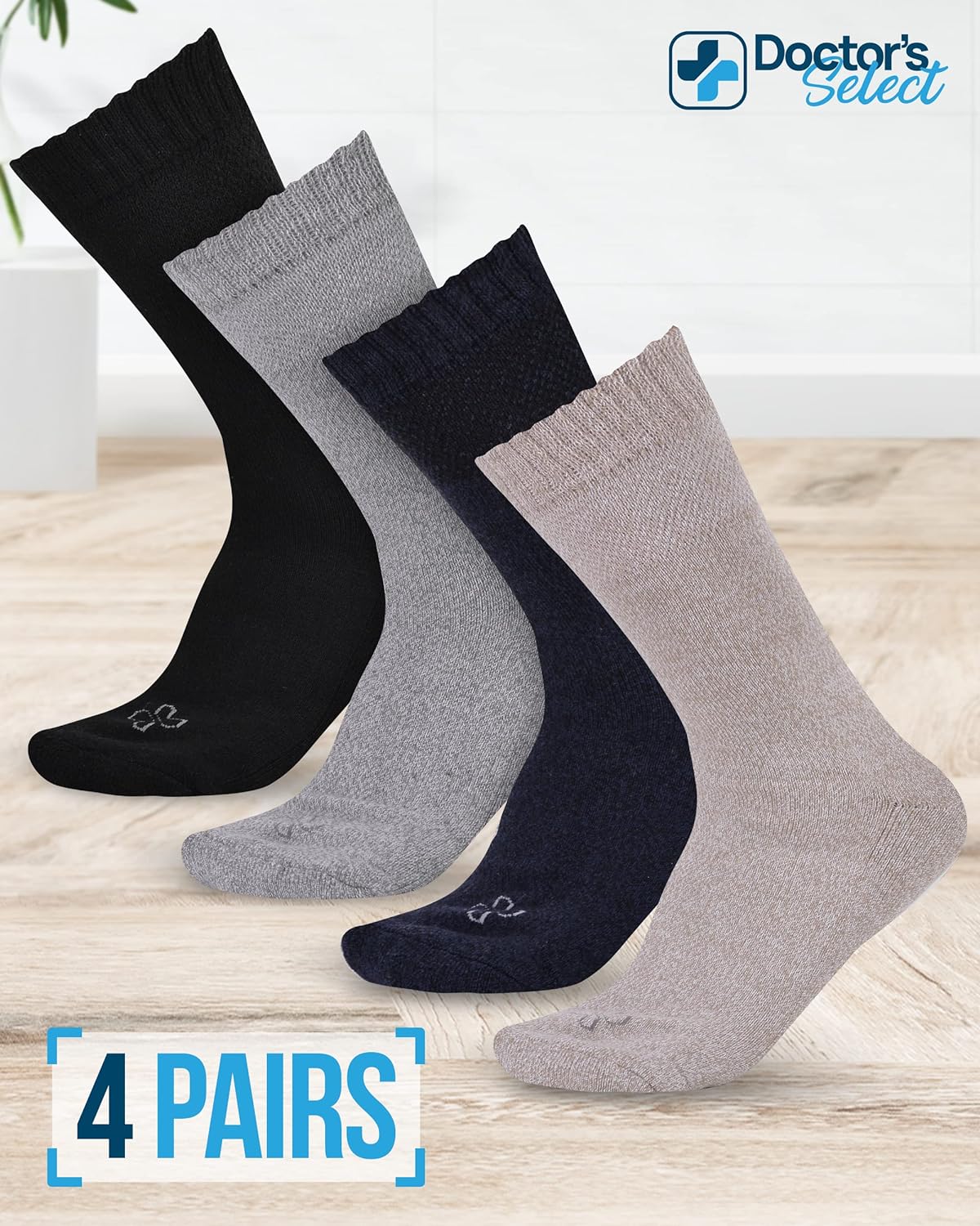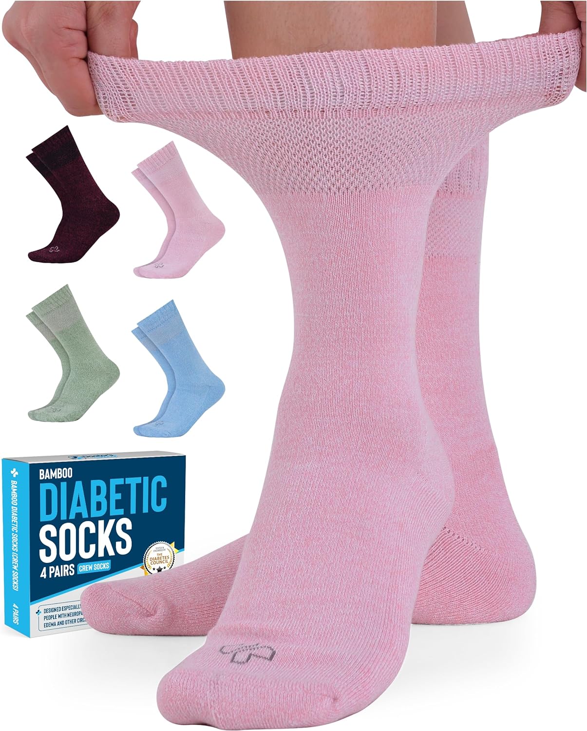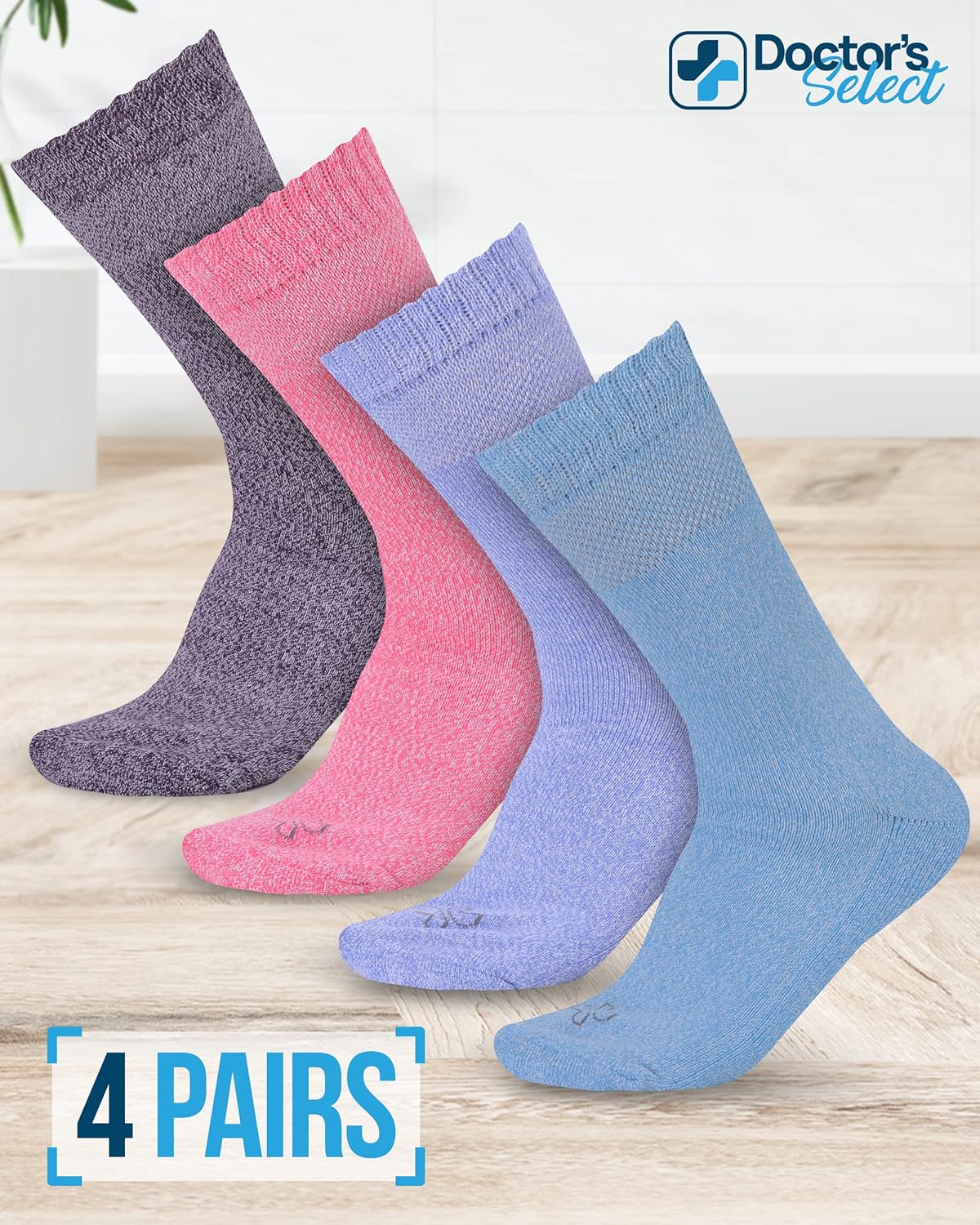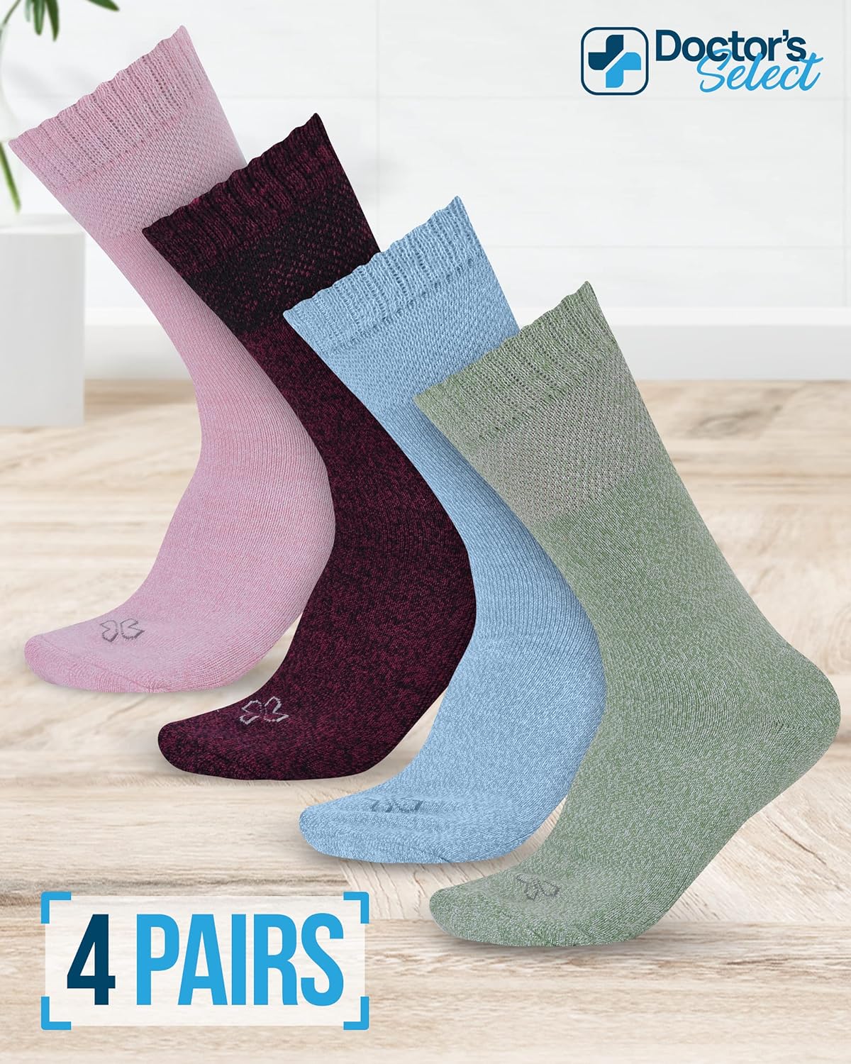 Doctor's Select Bamboo Diabetic Socks Women - 4 Pairs Crew Womens Diabetic Socks | Diabetic Socks for Women Size 6-9 and 9-11